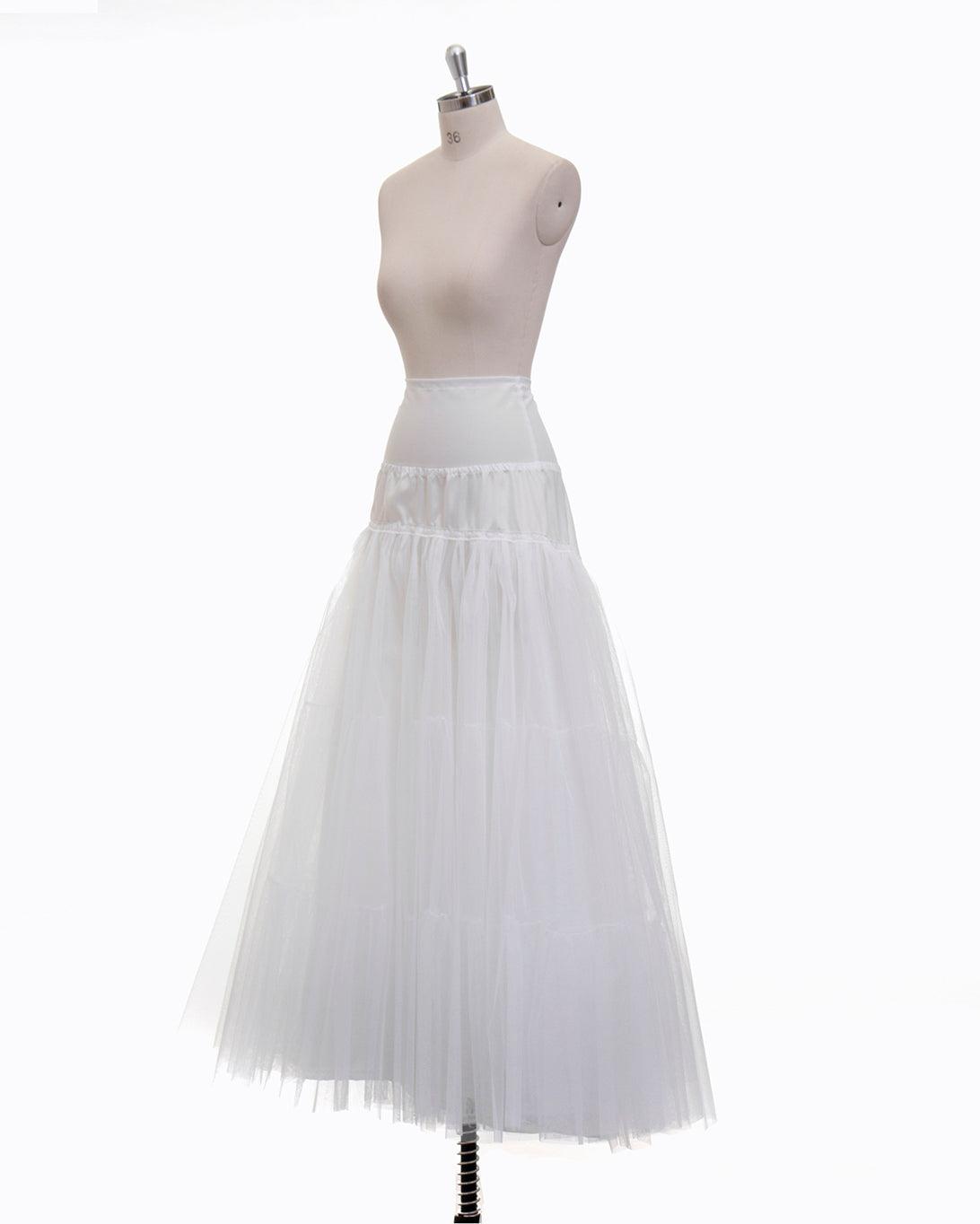 Petticoat with 3 rings, 1 layer of coarse tulle, 2 ruffles in coarse tulle, sizes small, medium and large.