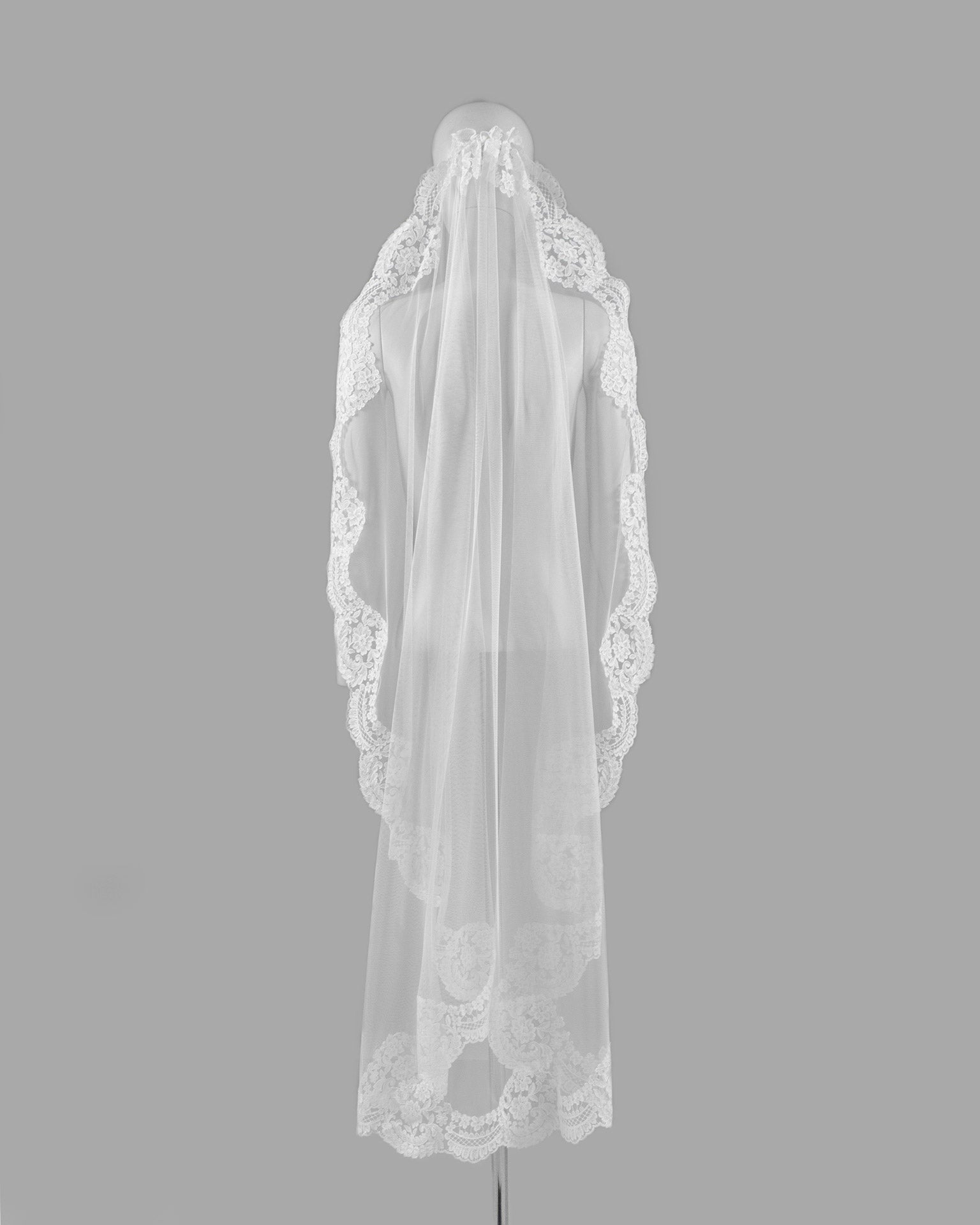 Soft tulle and beadwork bridal veil with comb and pearls.