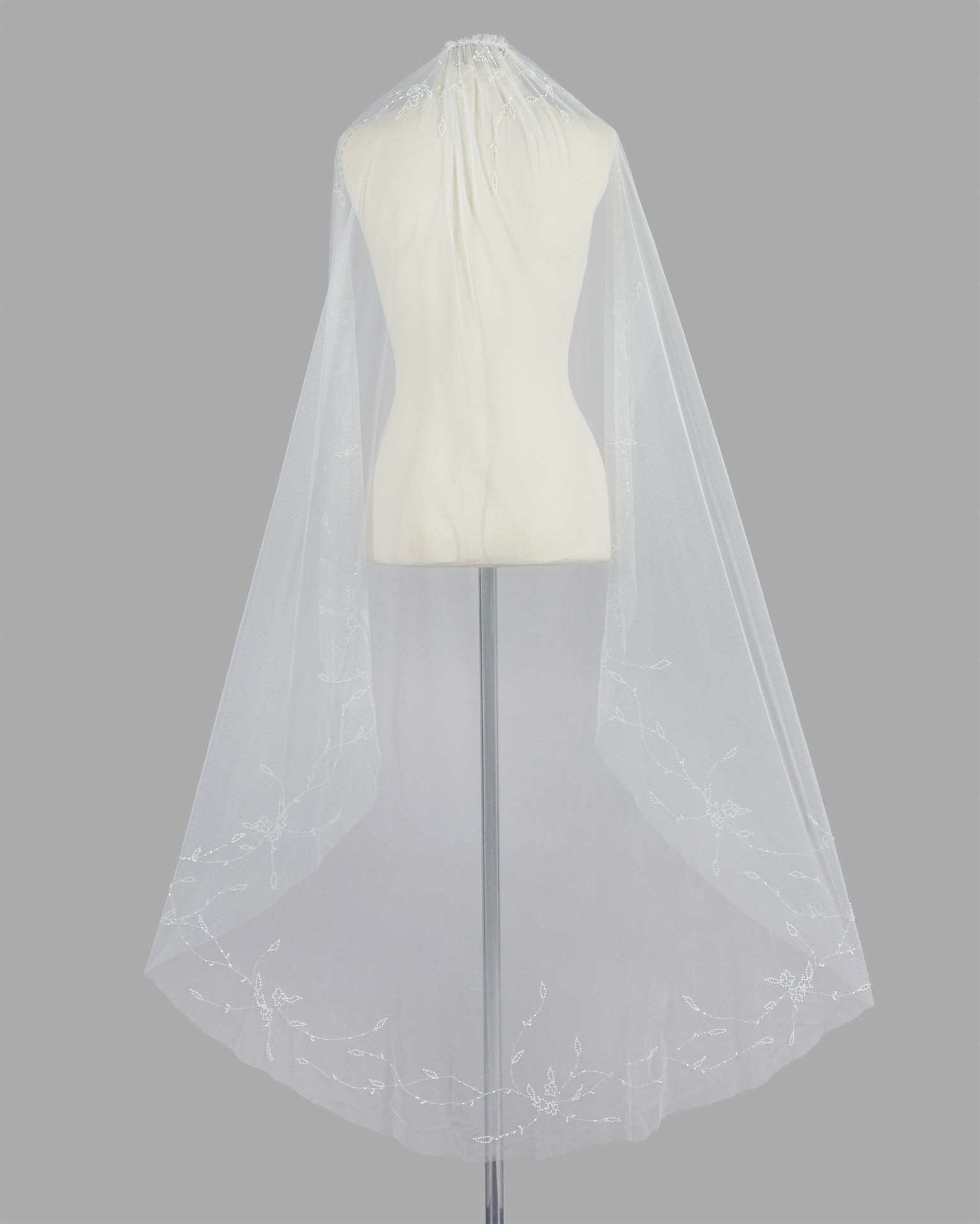 Soft tulle and beadwork bridal veil with comb and pearls.