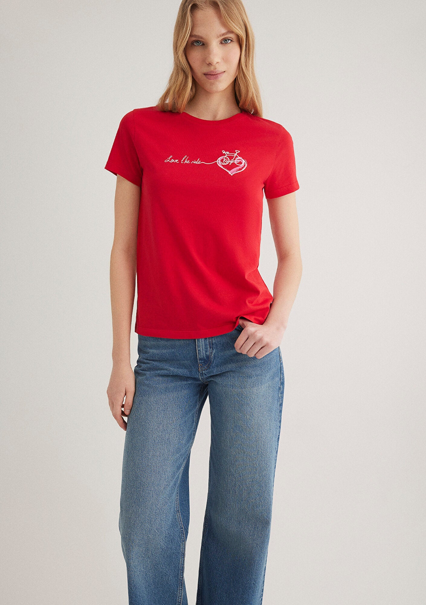 Bicycle Printed Red T shirt from Mavi s womens collection