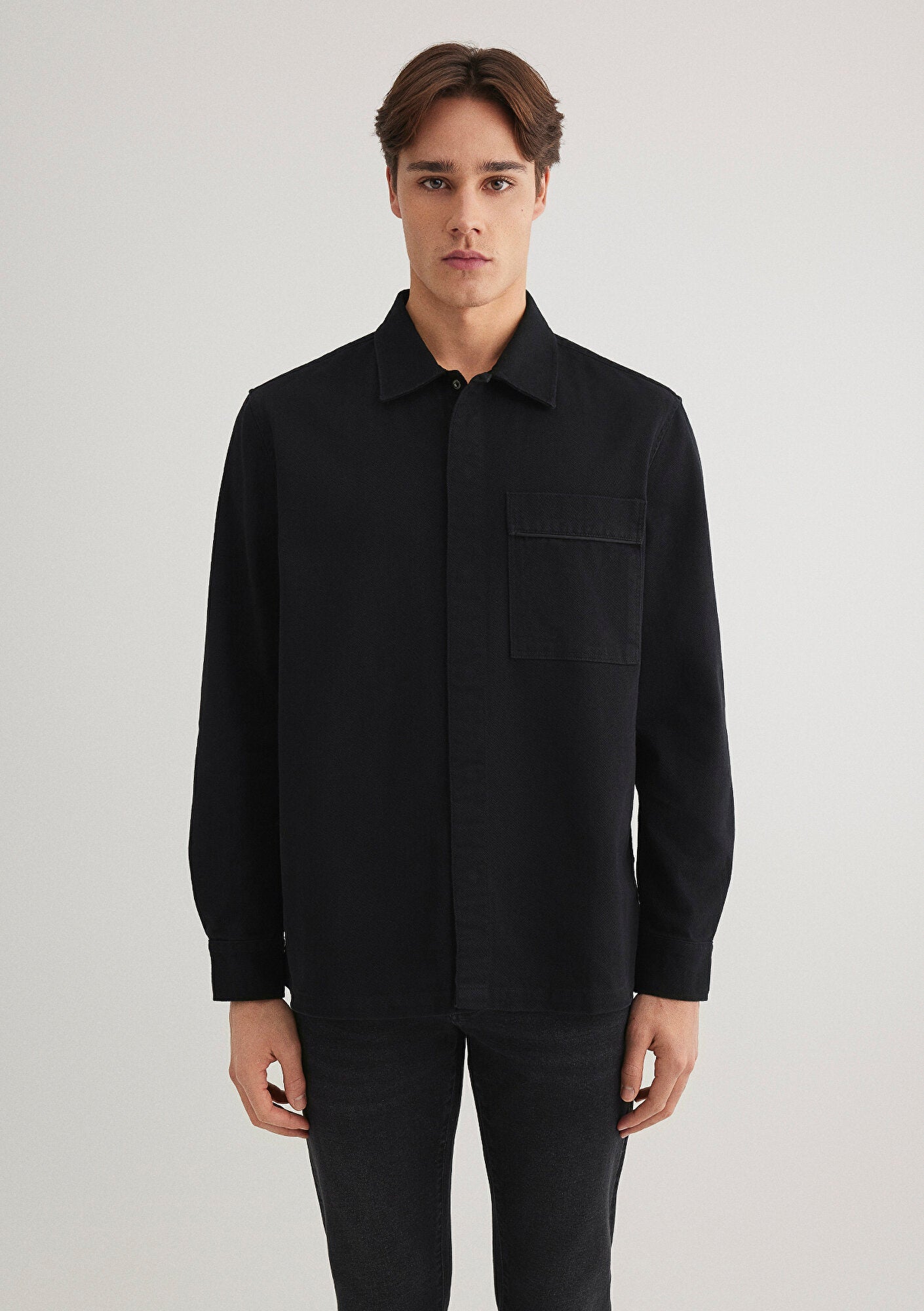 Black Shirt with Pocket Details from Mavi Black collection. Mavi s signature series Black offers a premium look with logo applications enriched by different techniques. The new Mavi Black collection, which comes to life in oversized cuts and elegant, timeless pieces made from Tencel blend fabrics, redefines the style codes of the modern man.