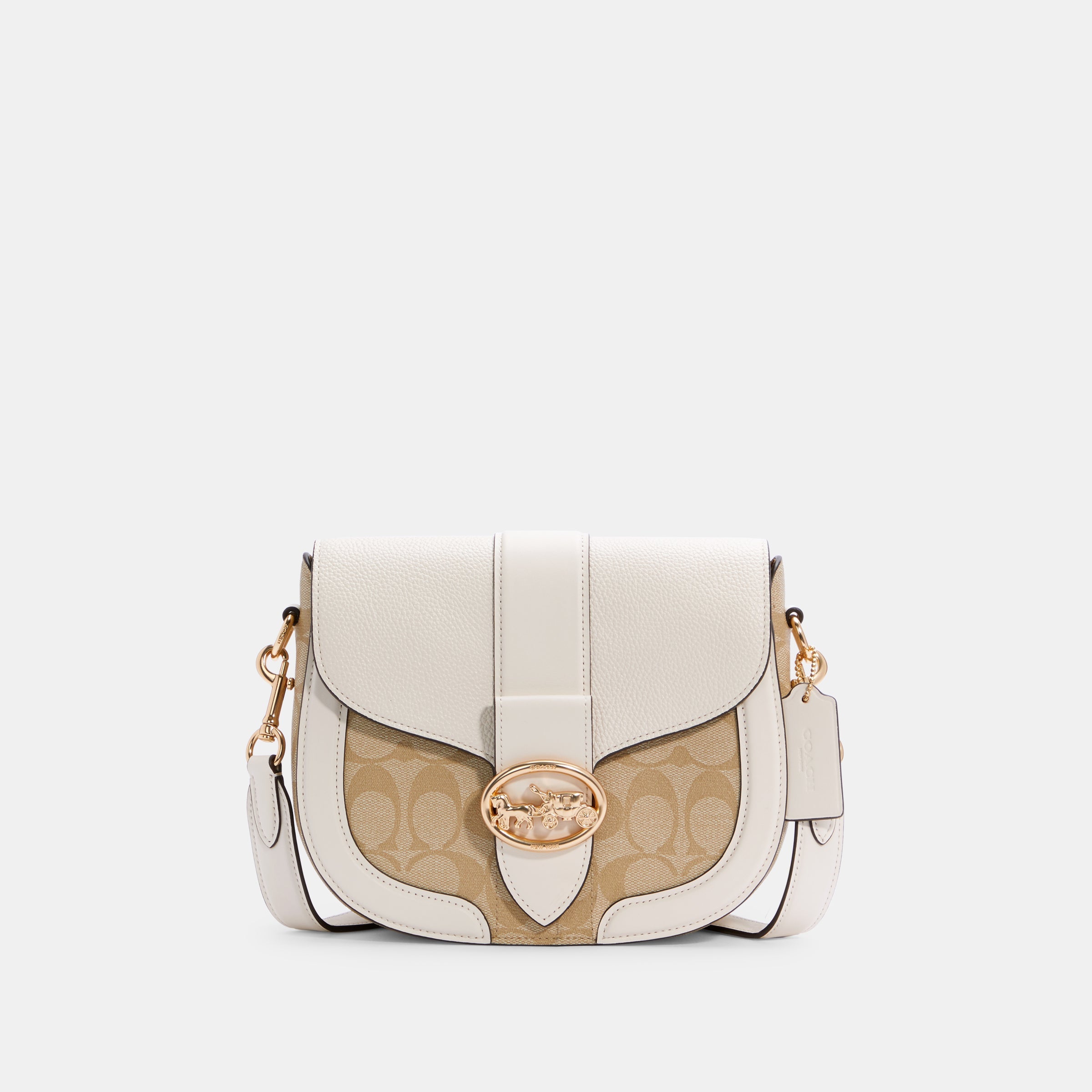 | Features | Signature coated canvas, smooth leather and refined pebble leather Inside multifunction pockets Snap closure, fabric lining Outside open pocket |