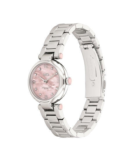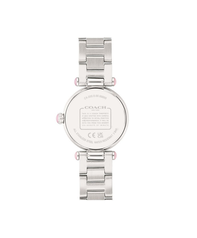 Timeless and elegant, the Cary watch is a sophisticated style perfect for day or night. The rosy Gift Set includes one 26mm stainless steel bracelet timepiece featuring pink mother-of-peal dial with crystal markers, and a delicate slider bracelet accented with a dreamy shooting star motif. Finished with the Coach Signature and diminutive hangtag, the bracelet adjusts to fit most wrists. Wear together or separately.
