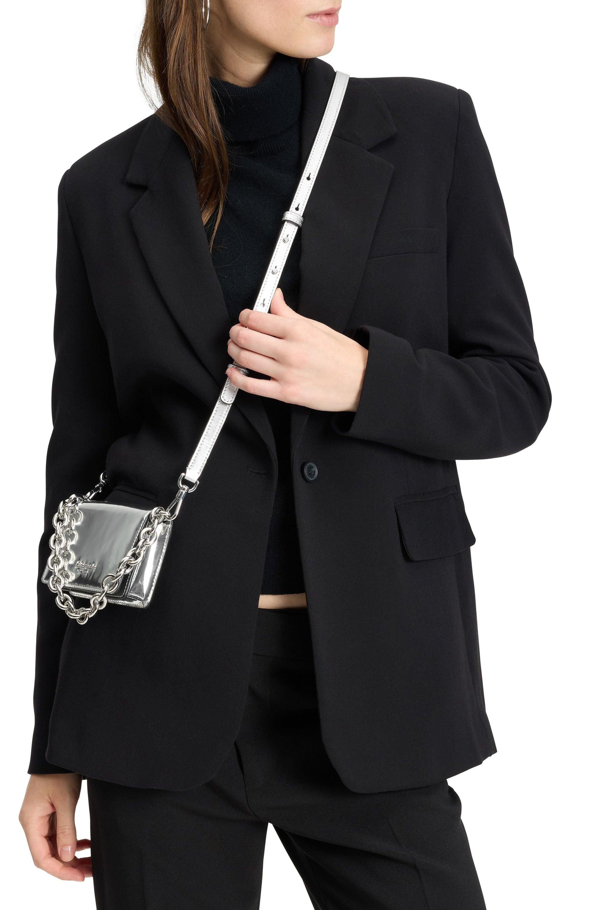 Natasha Metallic Smooth Leather Chain Card Case Crossbody
