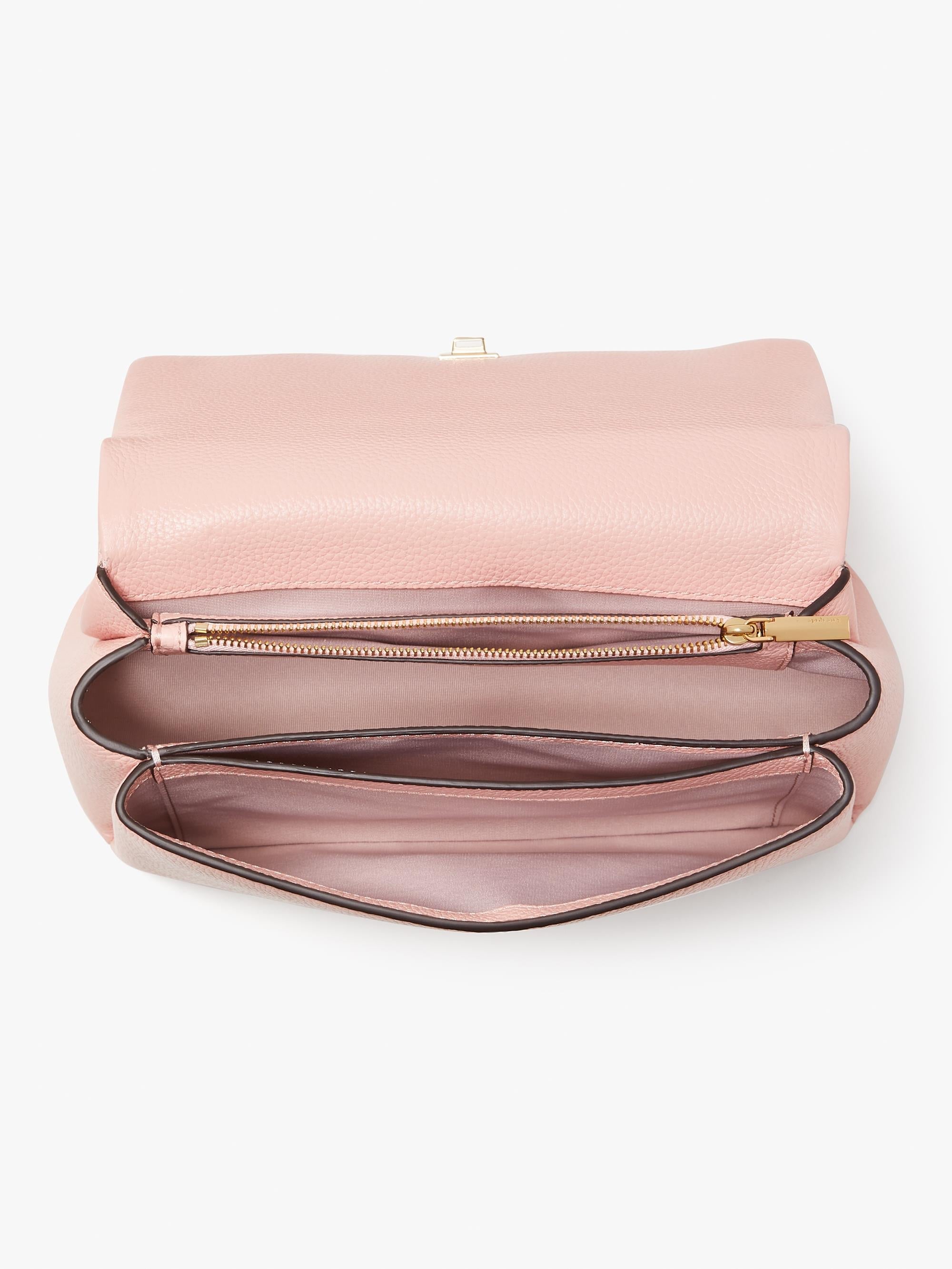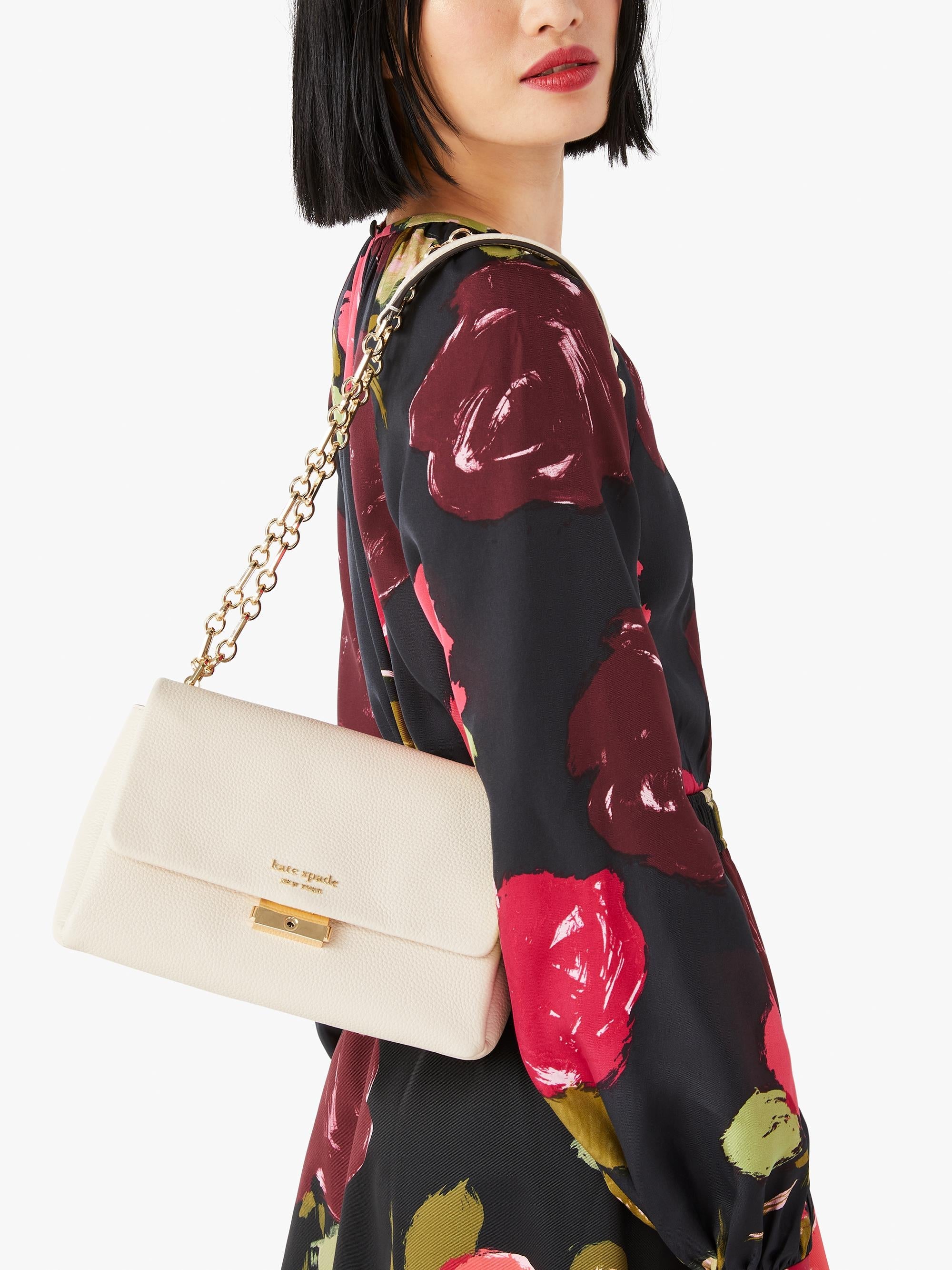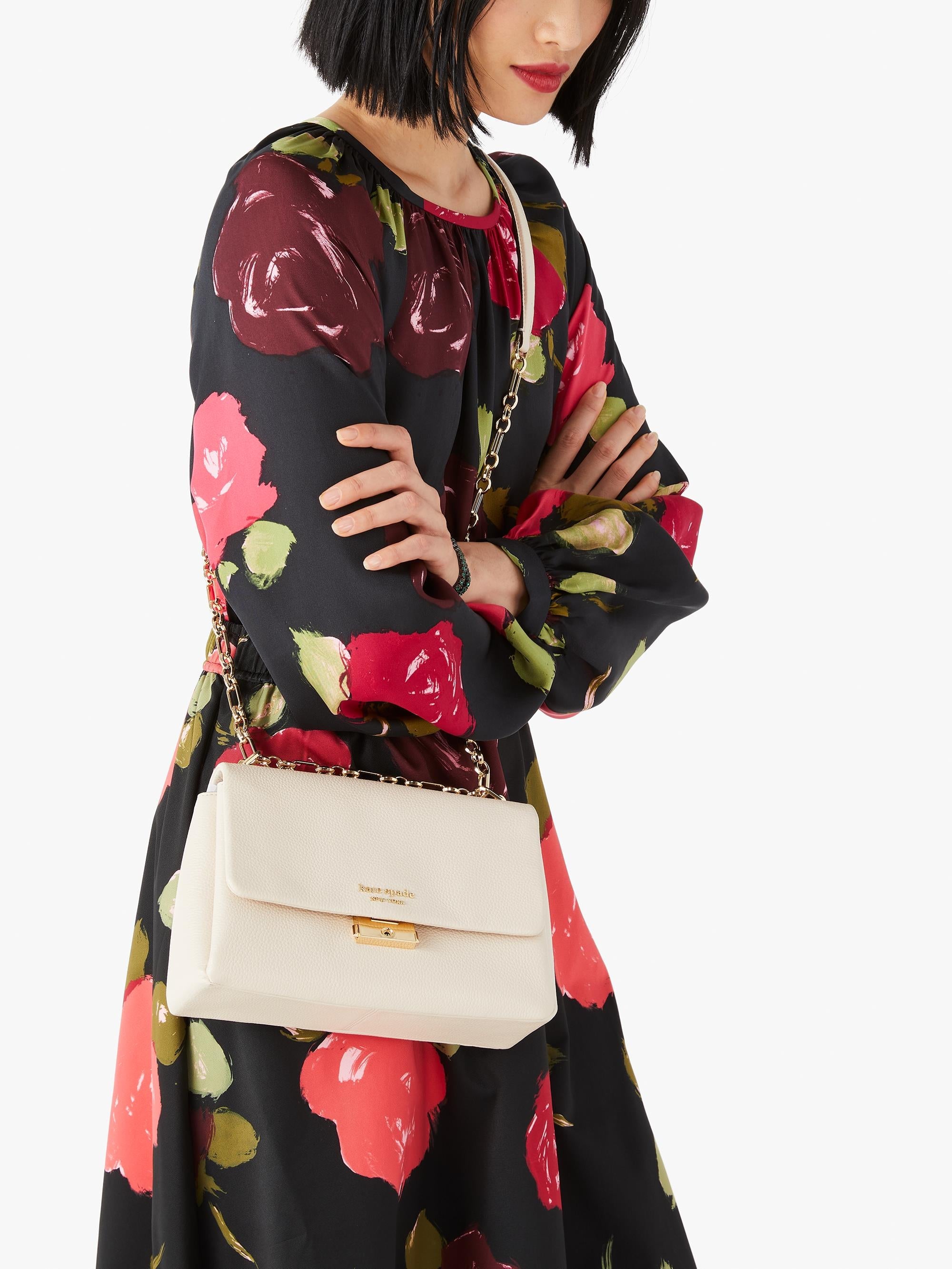 we'd like you to meet carlyle: the shoulder bag that holds you down any time, any place. it's made of the kind of pebbled leather that ages gracefully, like a fine wine. plus, chain detailing and a smart pinch-lock closure lend that luxurious hint of shine you were looking for...