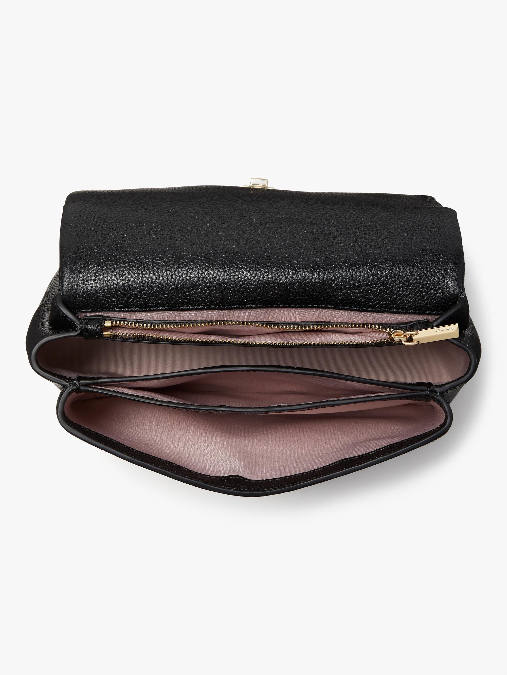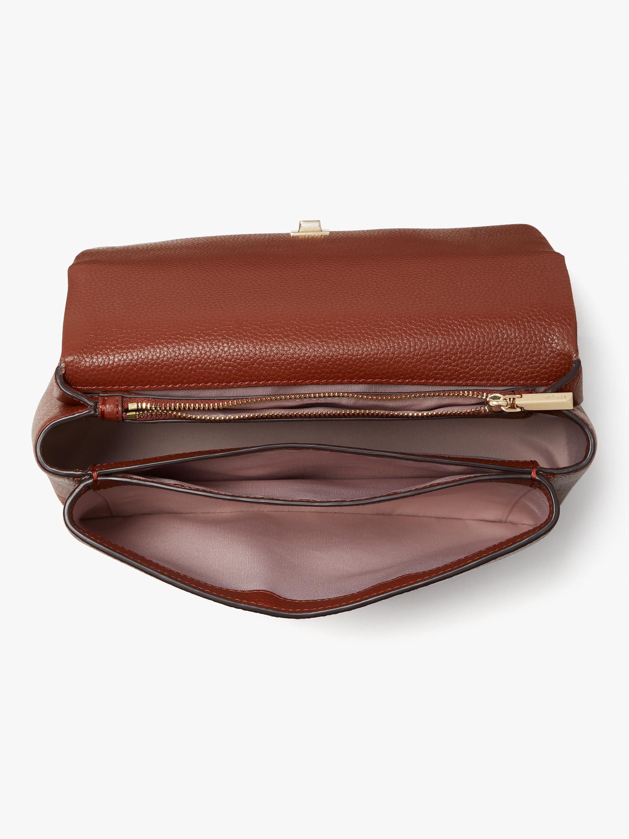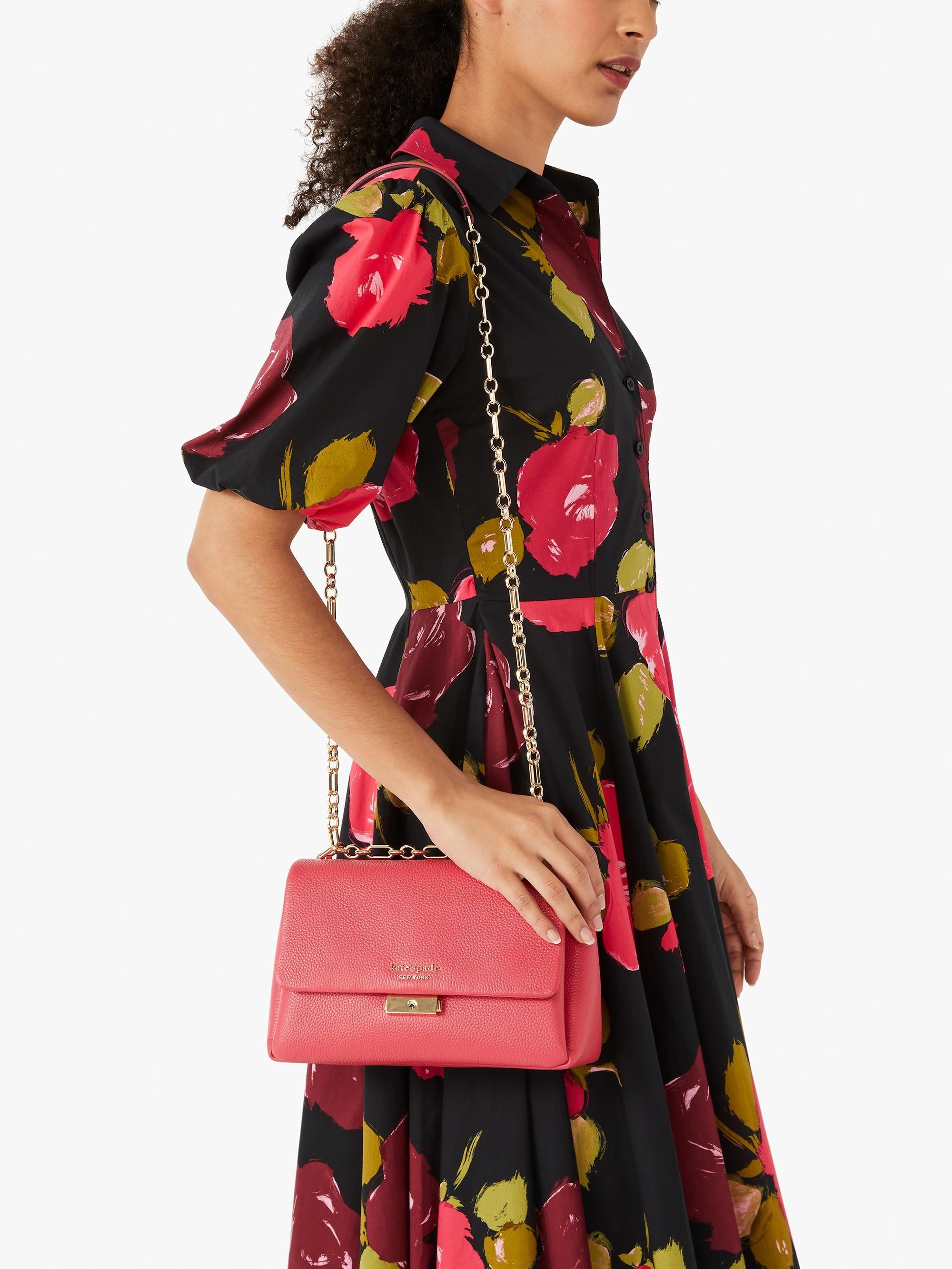 we'd like you to meet carlyle: the shoulder bag that holds you down any time, any place. it's made of the kind of pebbled leather that ages gracefully, like a fine wine. plus, chain detailing and a smart pinch-lock closure lend that luxurious hint of shine you were looking for...