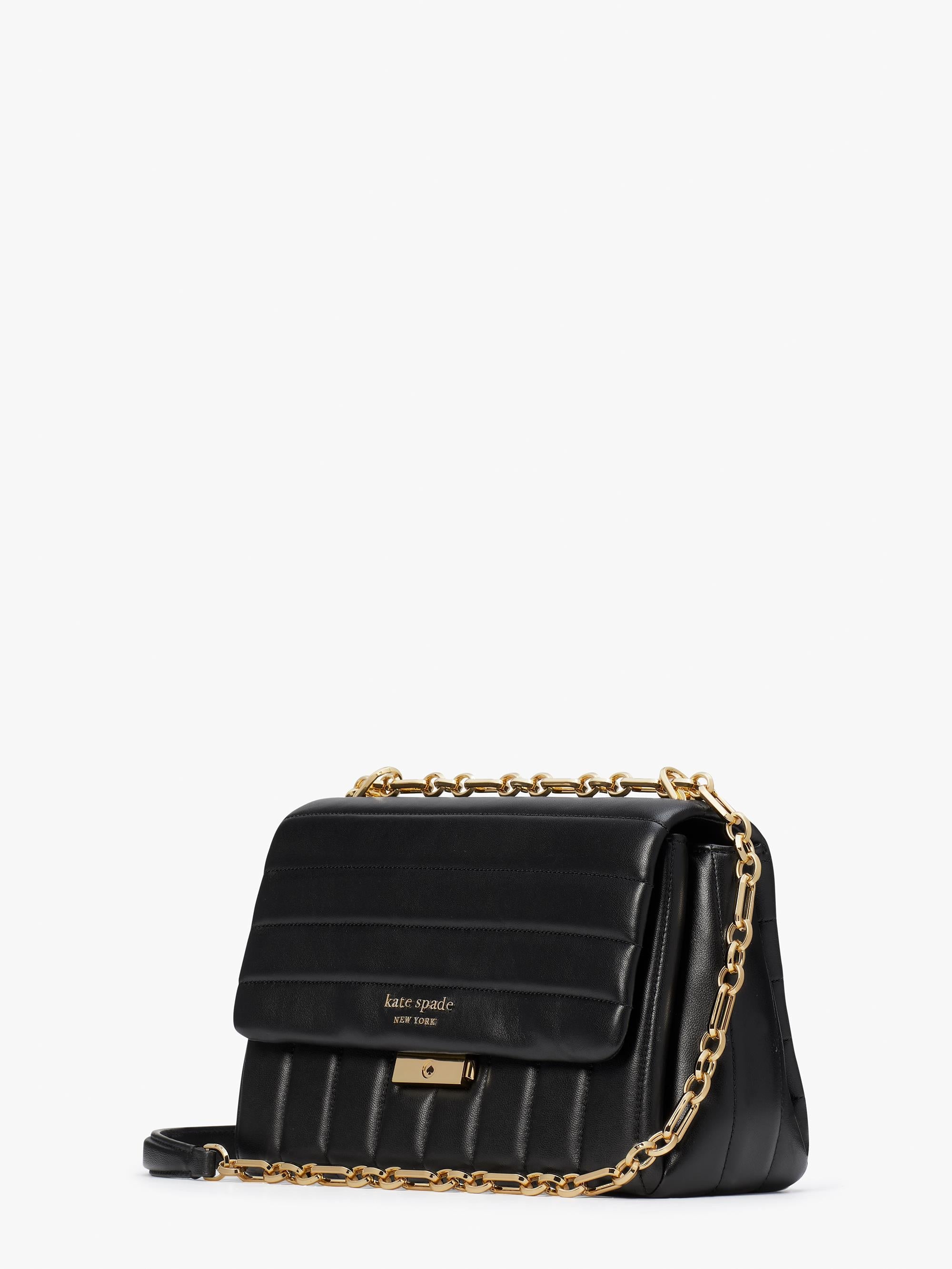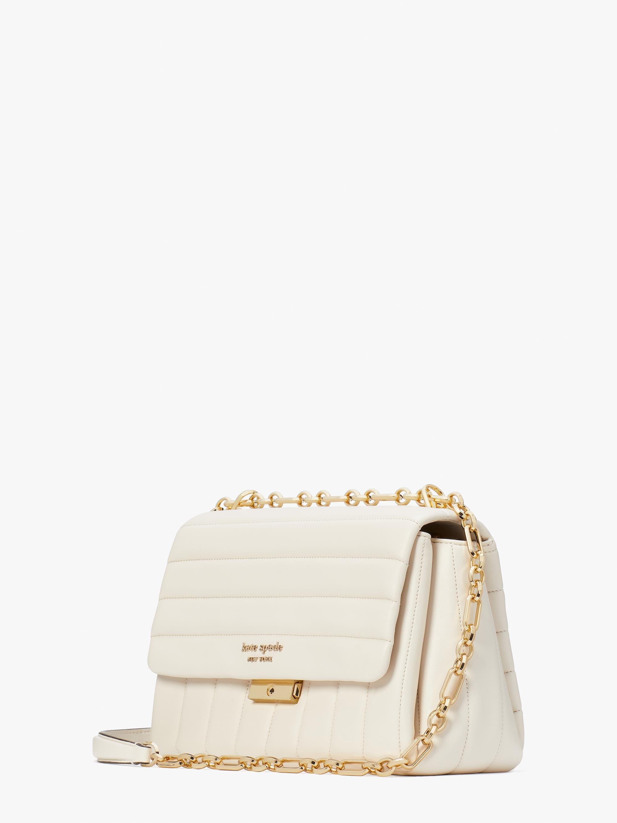 we'd like you to meet carlyle: the shoulder bag that holds you down any time, any place. it's made of elegantly quilted smooth leather, plus, chain detailing and a smart pinch-lock closure lend that luxurious hint of shine you were looking for...