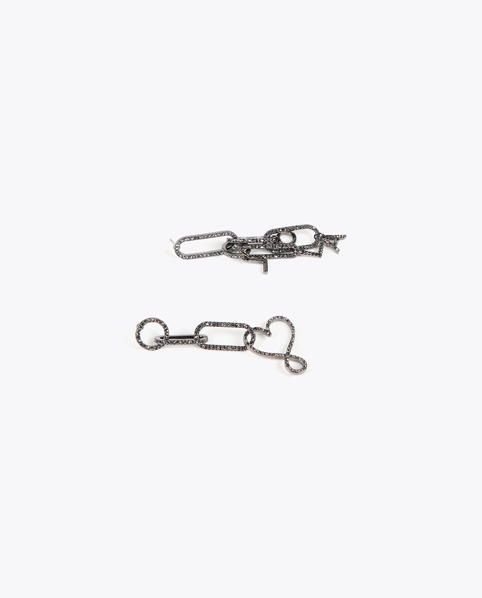 Gold-toned earrings with different rhinestone pendants and charms.