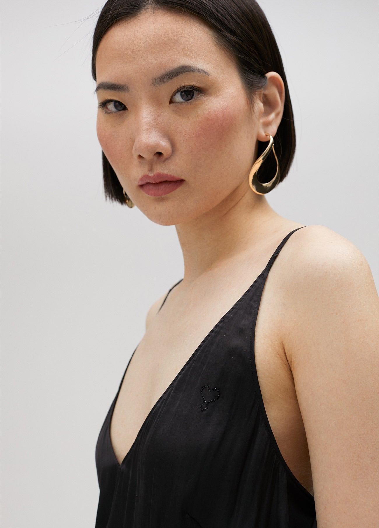 Satin top with V neckline and slim straps