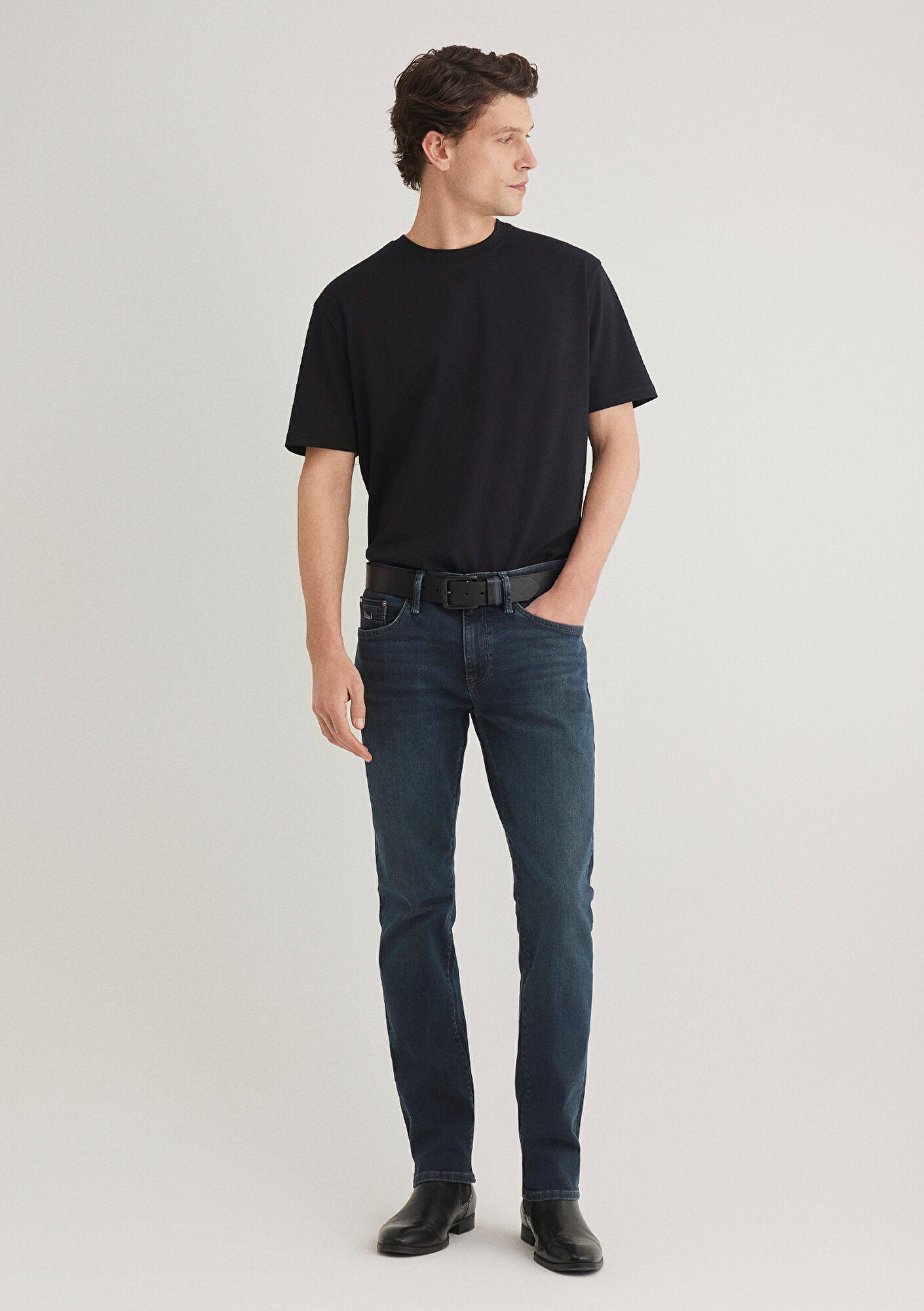 Marcus Dark Shaded Lux Black Jean Pants from Mavi denim collection. Modern straight fit. Tapered leg. Mavi s signature series Black offers a premium look with logo applications enriched by different techniques. The new Mavi Black collection, which comes to life in oversized cuts and elegant, timeless pieces made from Tencel blend fabrics, redefines the style codes of the modern man.