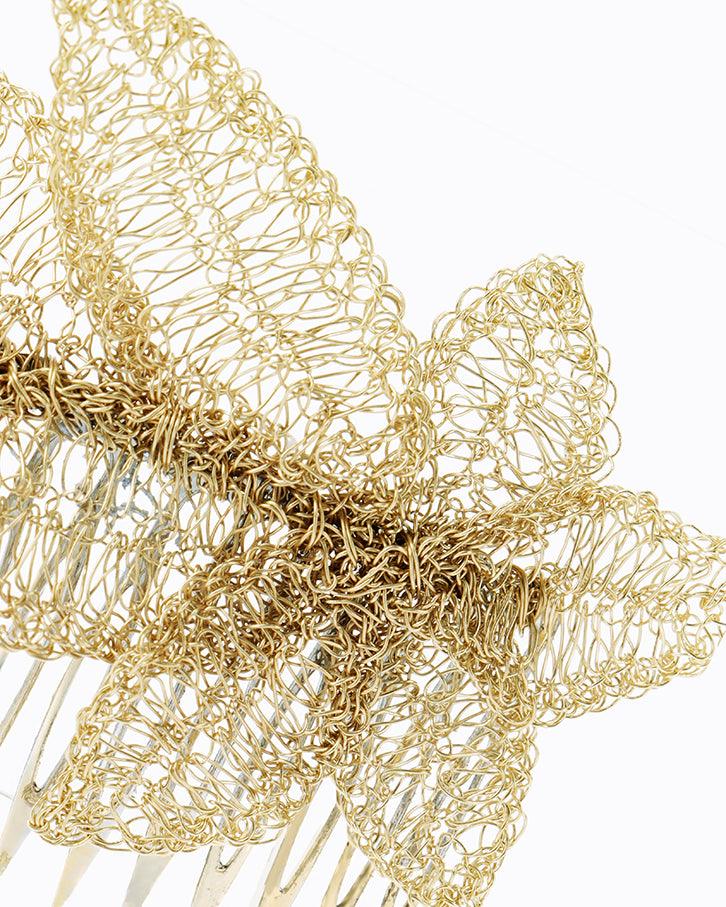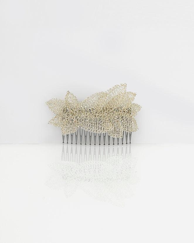 Naomi jewelled leaf-design silver wire mantilla comb, in silver.