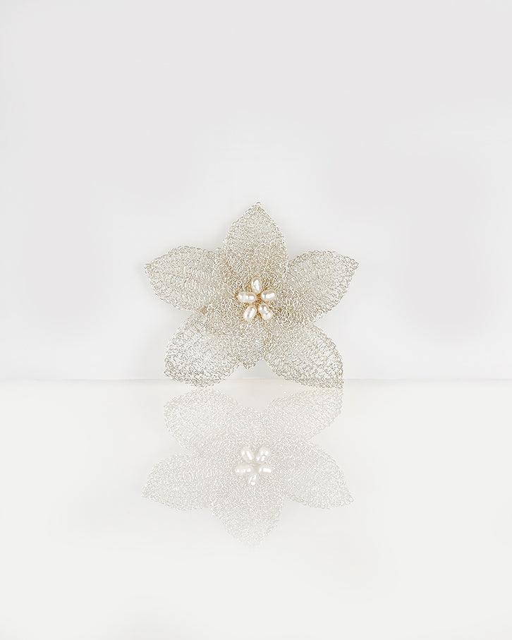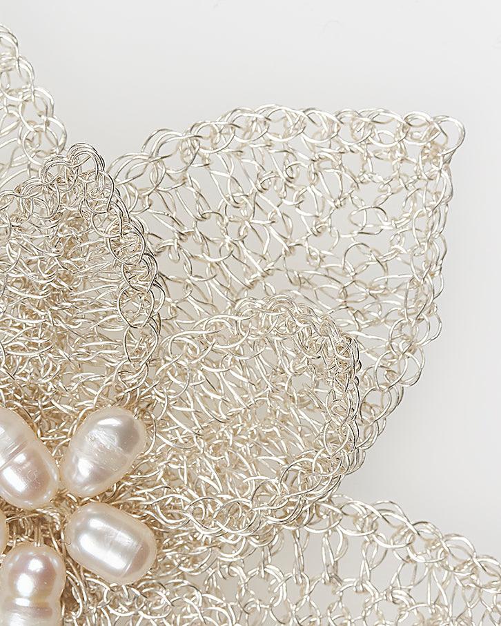 T02 jewelled flower-design silver wire and pearl headpiece hairclip, in silver.