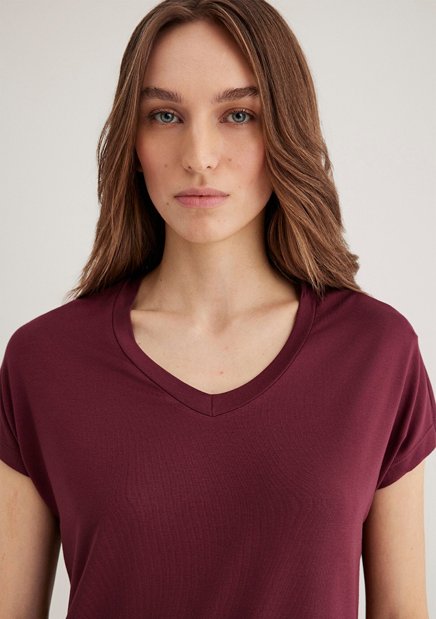V Neck Burgundy Basic T Shirt from Mavi s women collection.