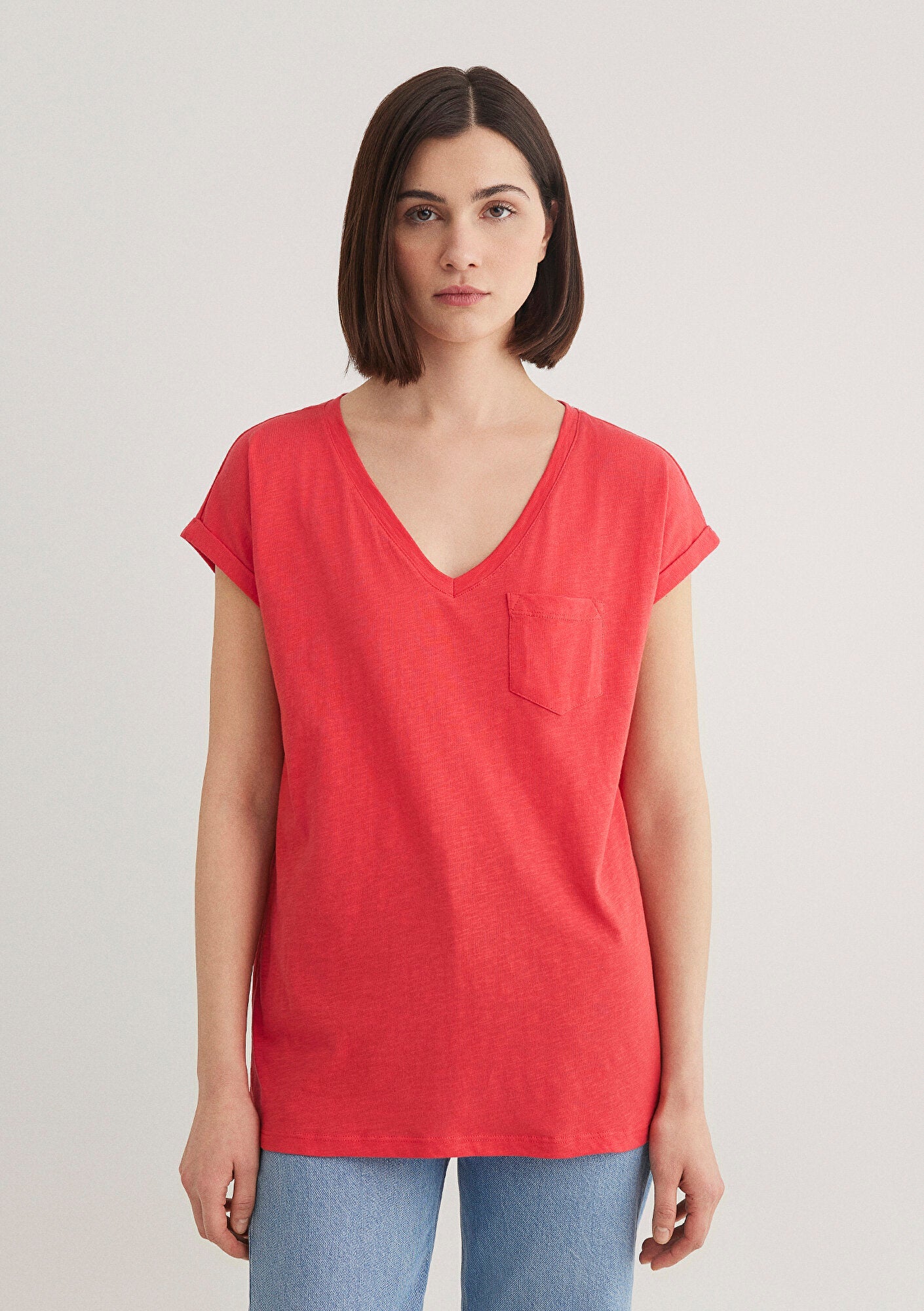 V Neck Pink Basic T-Shirt from Mavi s womens collection