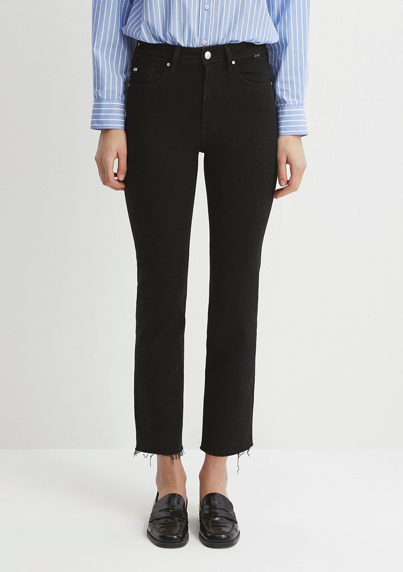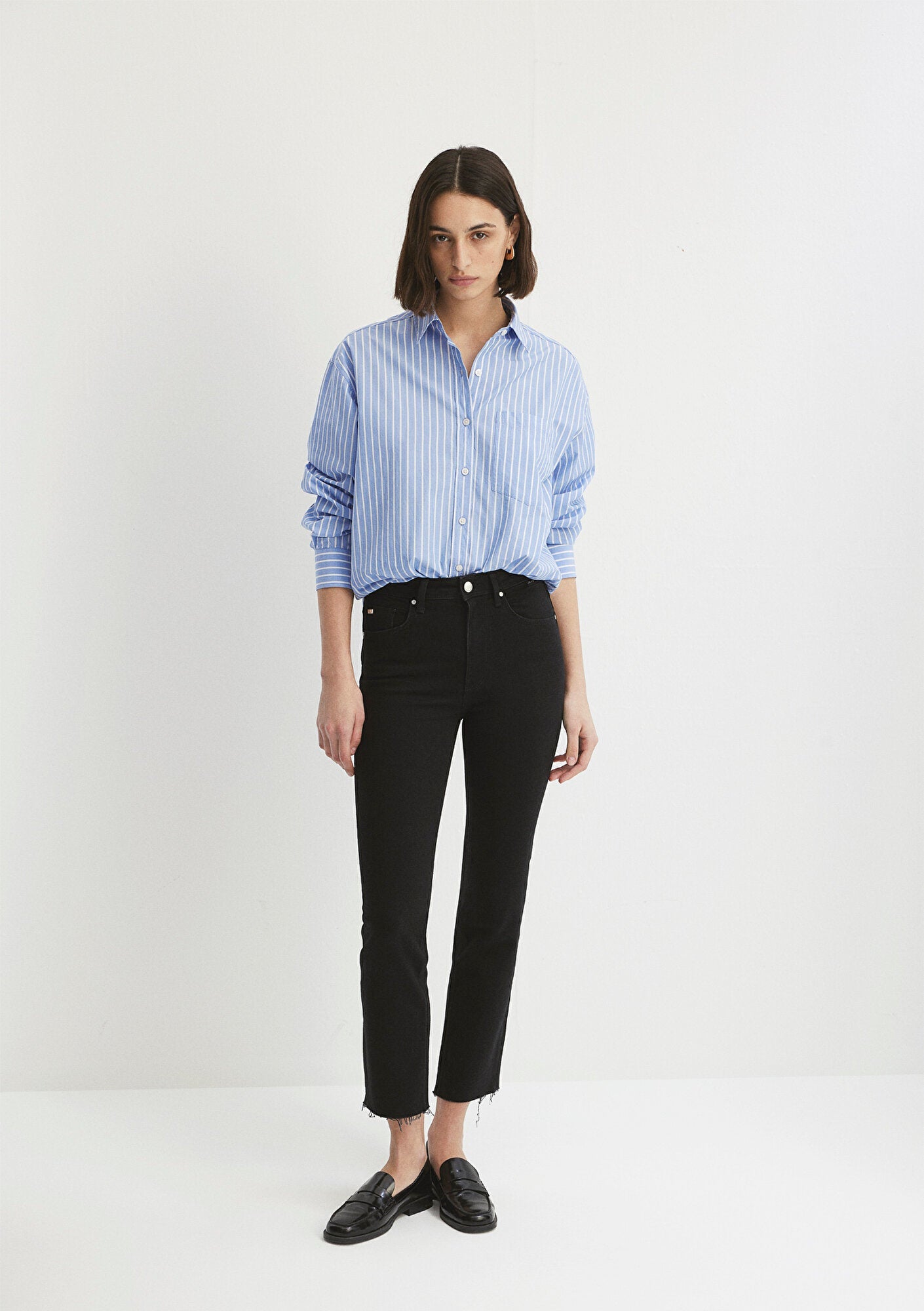 Viola Smoke Mavi Gold Jean Pants from Mavi denim collection. Modern straight fit. Waist and hip hugging. Slim straight jean. Mavi Gold denim offers a premium look with striking accessories and unique details in every outfit. It provides comfort throughout the day with softness and freedom of movement, from day to night.