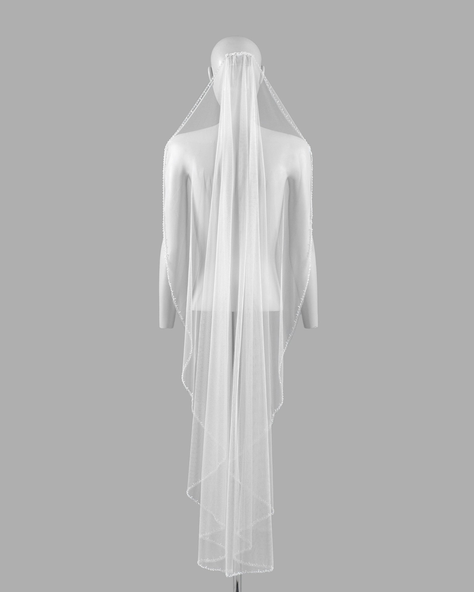 Soft tulle and beadwork bridal veil with comb and pearls.