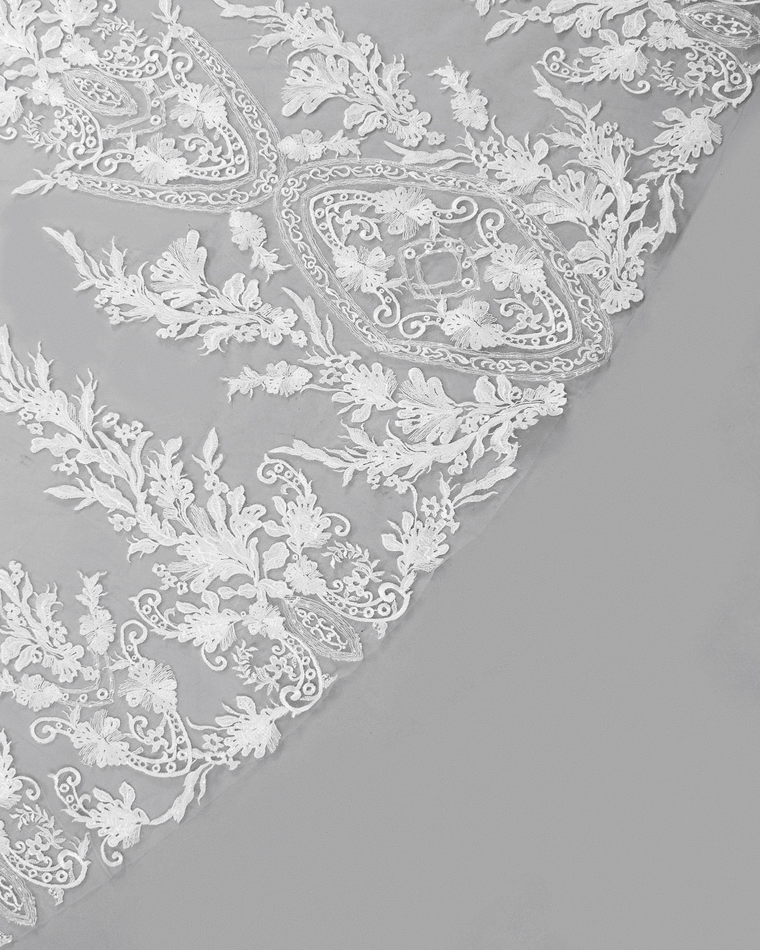 Tulle and lace bridal veil with beading.