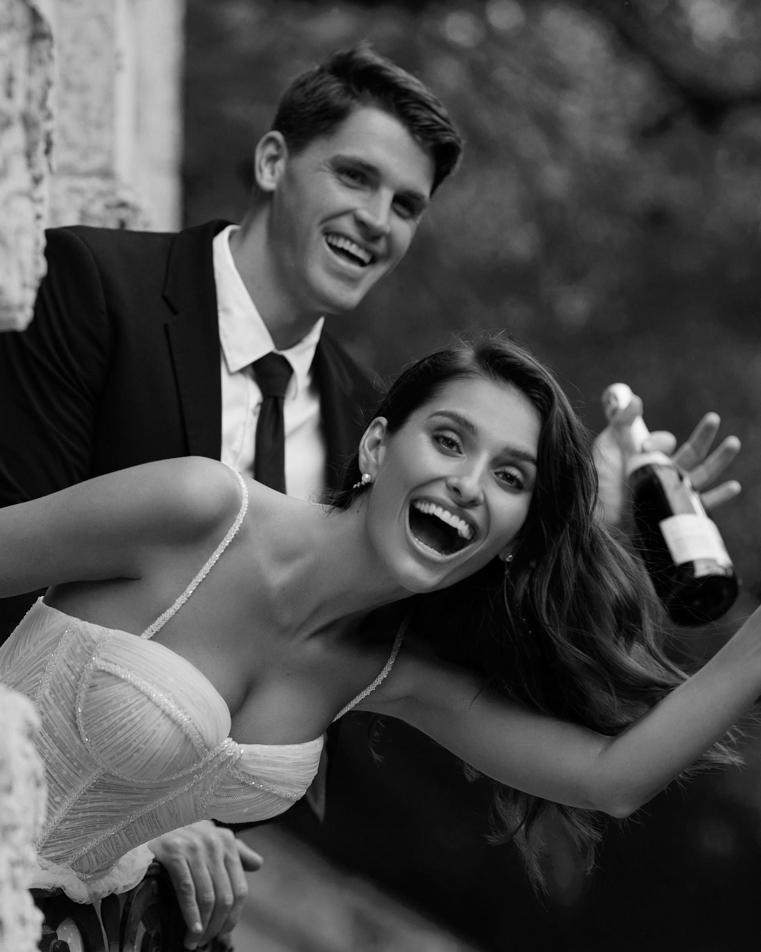 Princess-style A-line wedding dress, crafted in tulle with lace and beadwork detailing. Showcase this design featuring a strapless neckline, open back, straps and skirt with glitter tulle. This is a delicate Aire Royale look.