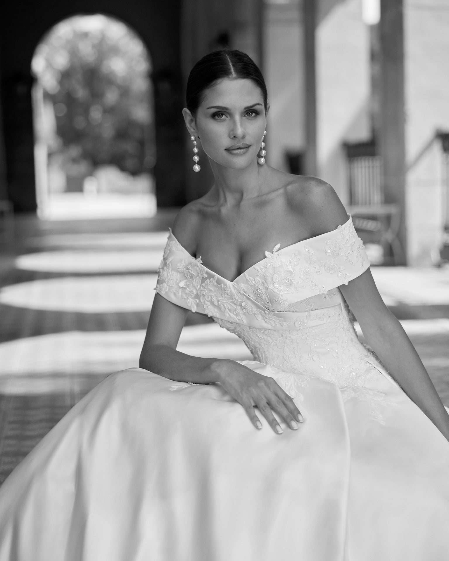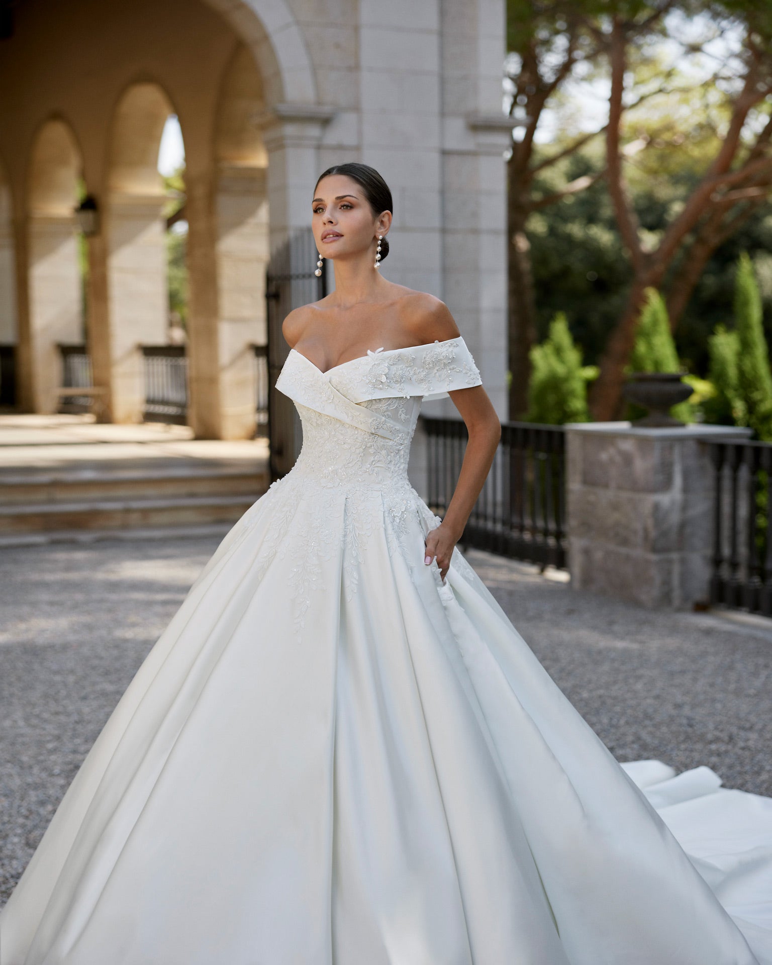Wedding dress version, mikado, beaded lace. Luna Studio.