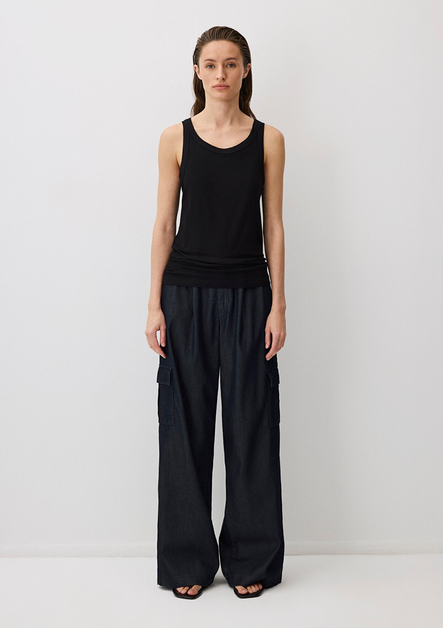 Black Tank Top from Mavi s Mavi Edition collection. Fitted, body-hugging cut. Wide neckline. Sleeveless.