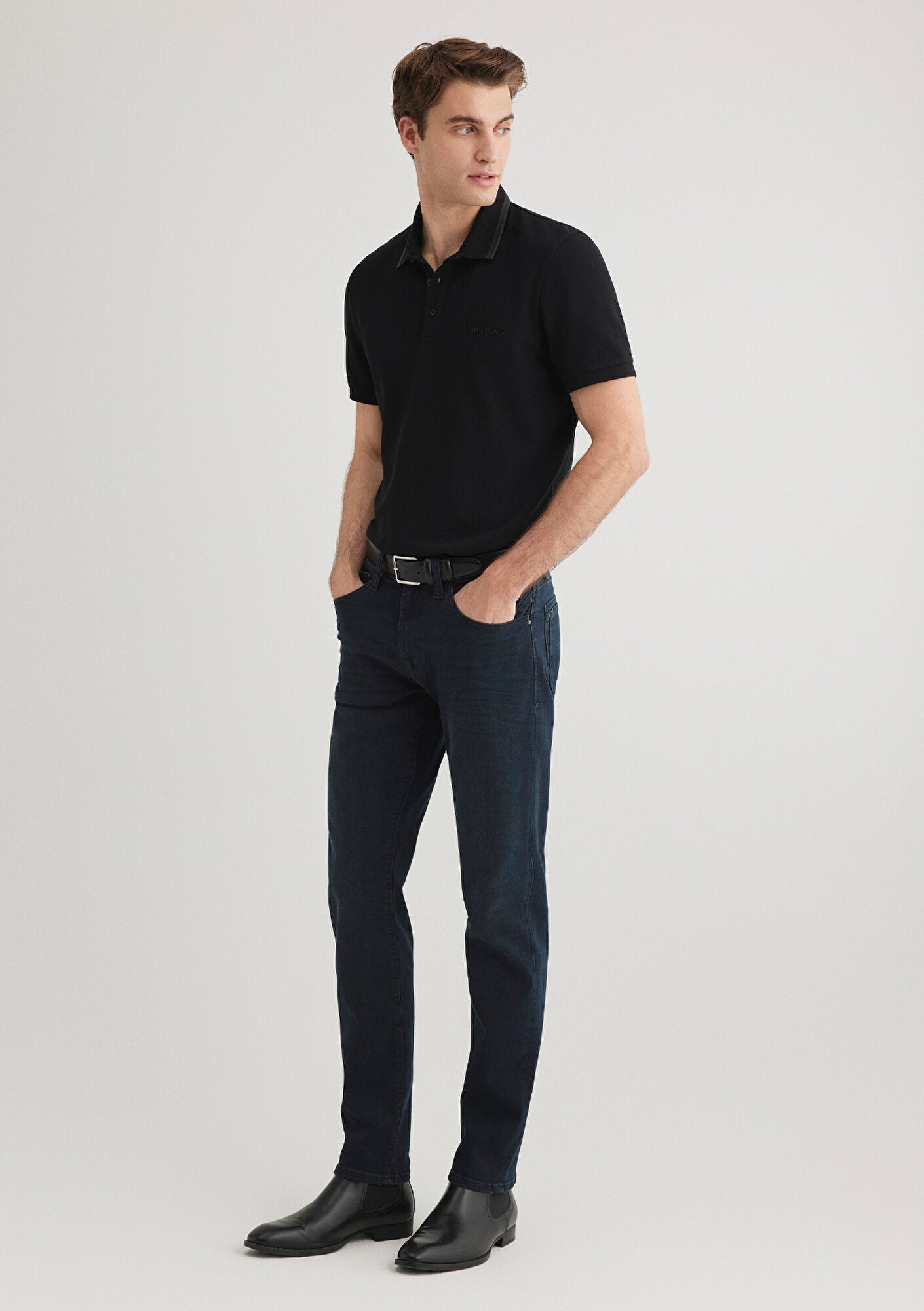 Jake Dark Foggy Mavi Jet Black Jean Pants from Mavi s denim collection. Skinny, straight leg. A stylish look with black and white selvedge and a black enamel plate detail on the watch pocket.