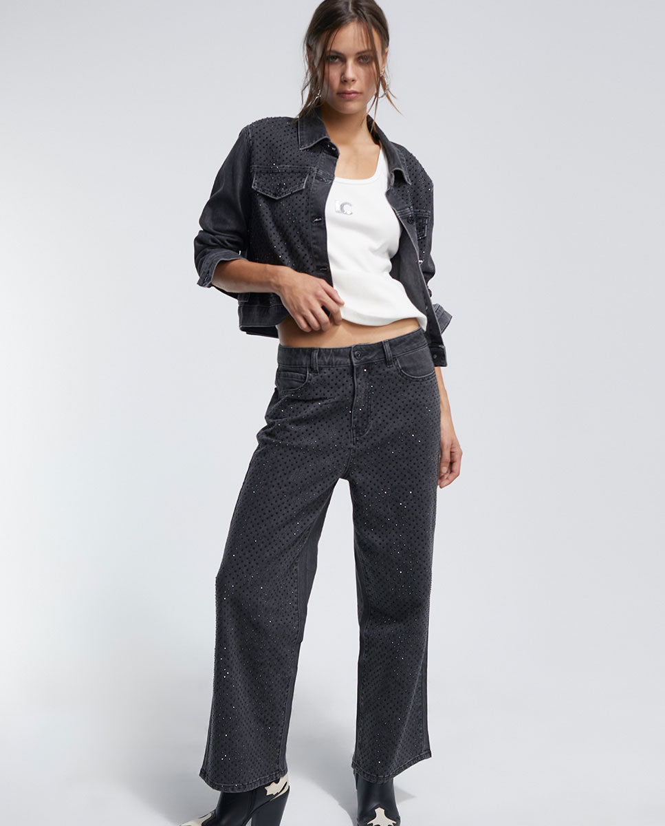 Denim jacket with diamanté detail