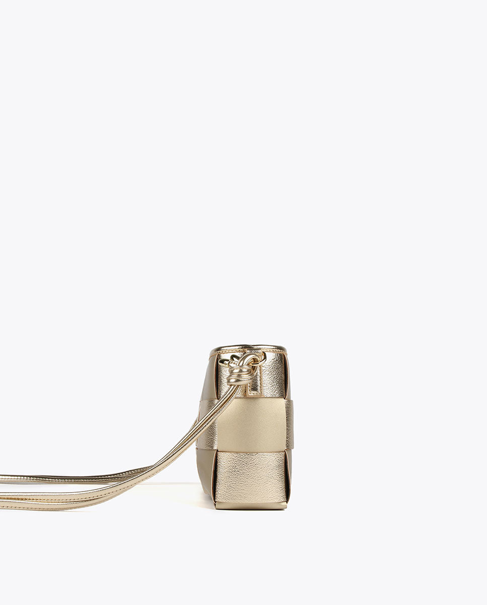 Braided faux leather crossbody bag with an embossed logo on the front. Handles and detachable crossbody strap. Zip fastening.