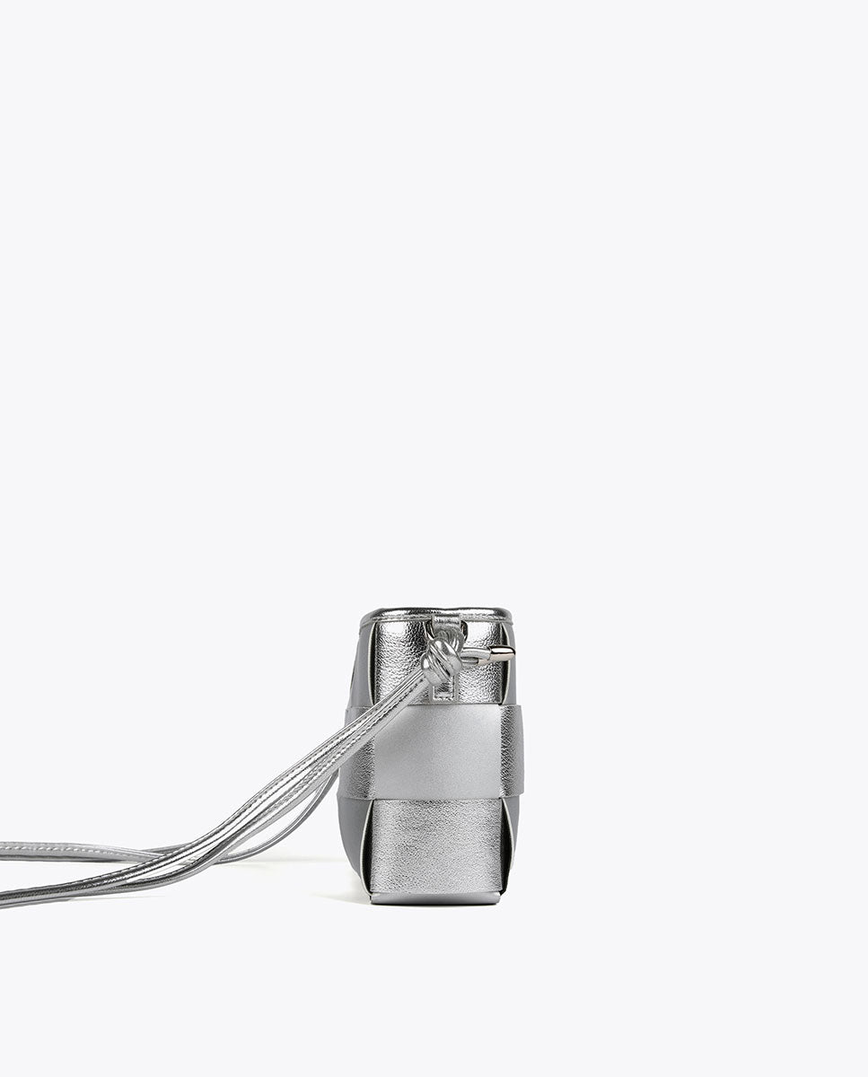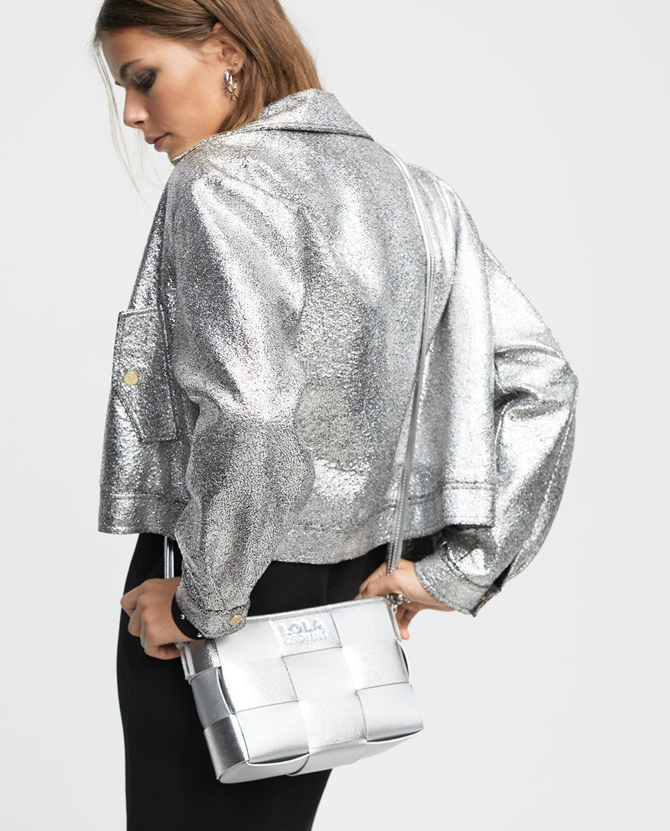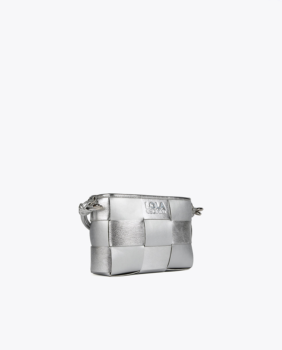 Braided faux leather crossbody bag with an embossed logo on the front. Handles and detachable crossbody strap. Zip fastening.