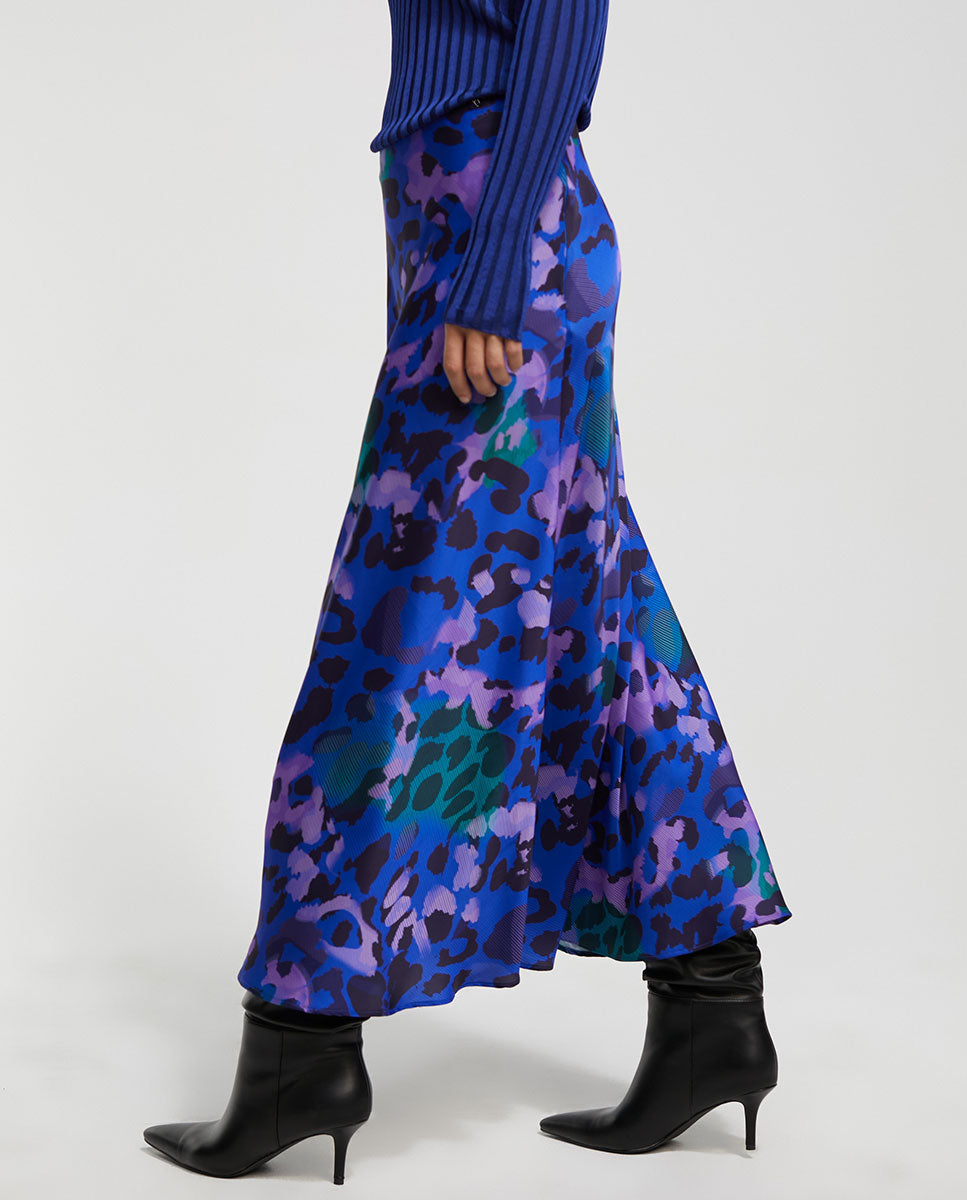 Animal print skirt. Made of flowing fabric. Side zip fastening.