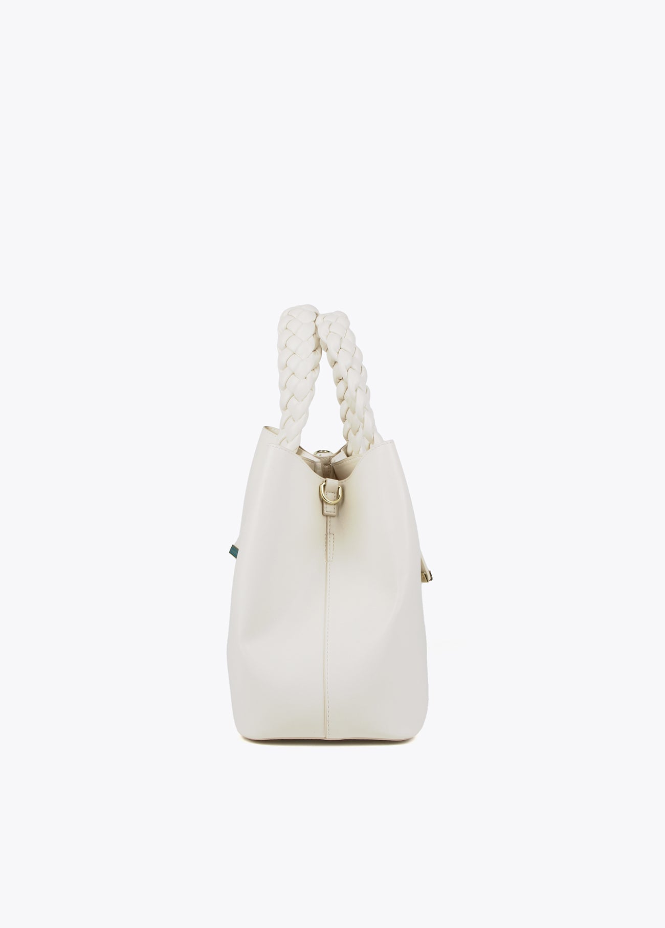 Medium faux leather bag. Braided handles and inner toiletry bag. Includes a crossbody strap. Magnetic closure.