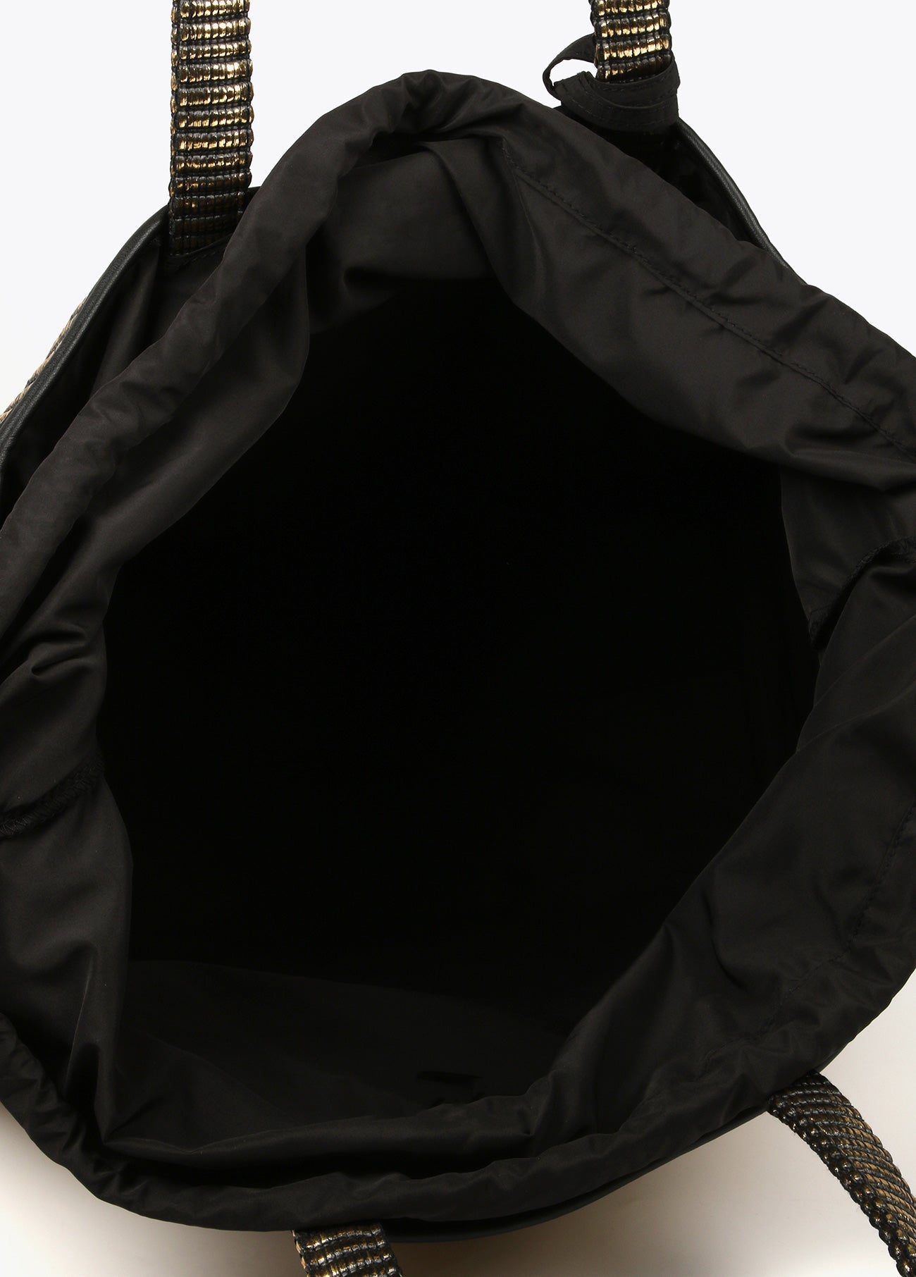 Large tote bag in metallic raffia-effect material. Inside pocket and crossbody strap. Adjustable drawstring closure. HEIGHT: 32 cm - LENGTH: 18 cm - WIDTH: 43 cm