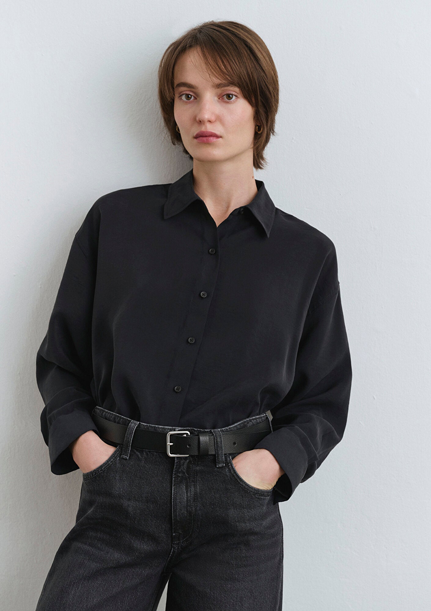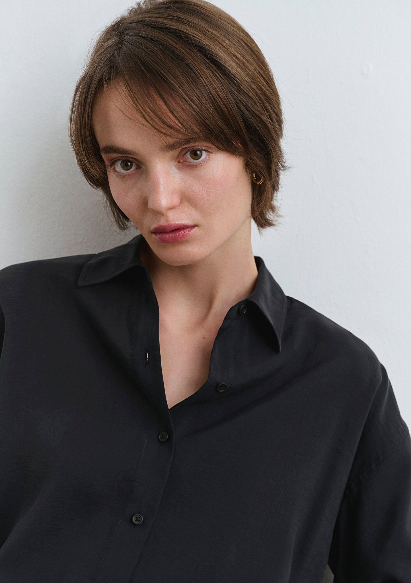 Lux Touch Black Modal Shirt from Mavi Lux Touch collection.