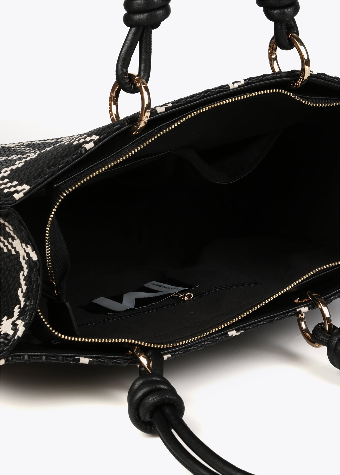 Faux leather tote bag. Checked print detail with knots on the straps. Zip fastening. HEIGHT: 30 cm - LENGTH: 39 cm - WIDTH: 13 cm