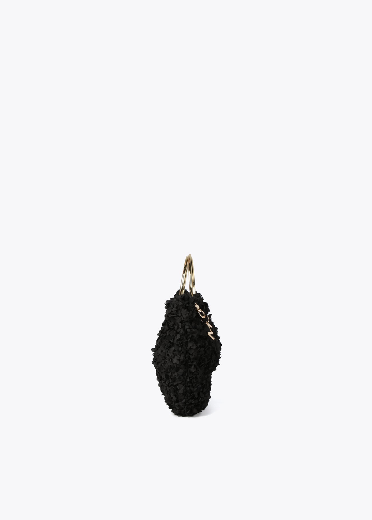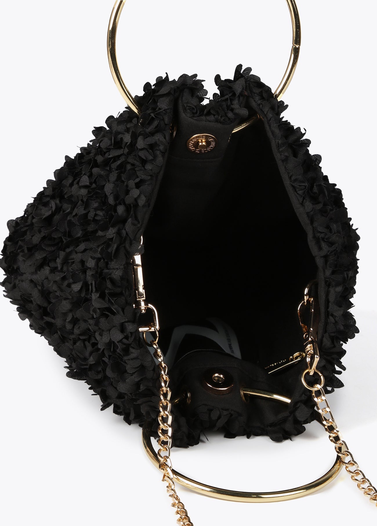 Mini bag with metal handles in floral fabric. Features an inside zipped pocket and charm with M. Includes a metallic crossbody strap. HEIGHT: 20 cm - LENGTH: 25 cm - WIDTH: 5.5 cm / CROSSBODY BAG: 56 cm