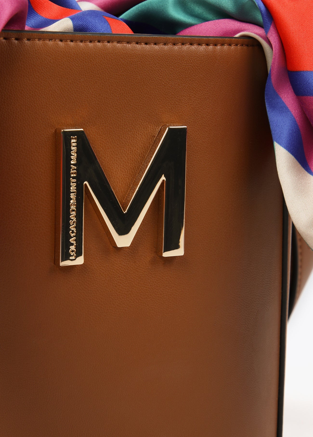 Faux leather bucket bag. Braided handle and interior with satin scarf detail. Includes a crossbody strap. HEIGHT: 17 cm - LENGTH: 17 cm - WIDTH: 13 cm / CROSSBODY BAG: 145 cm