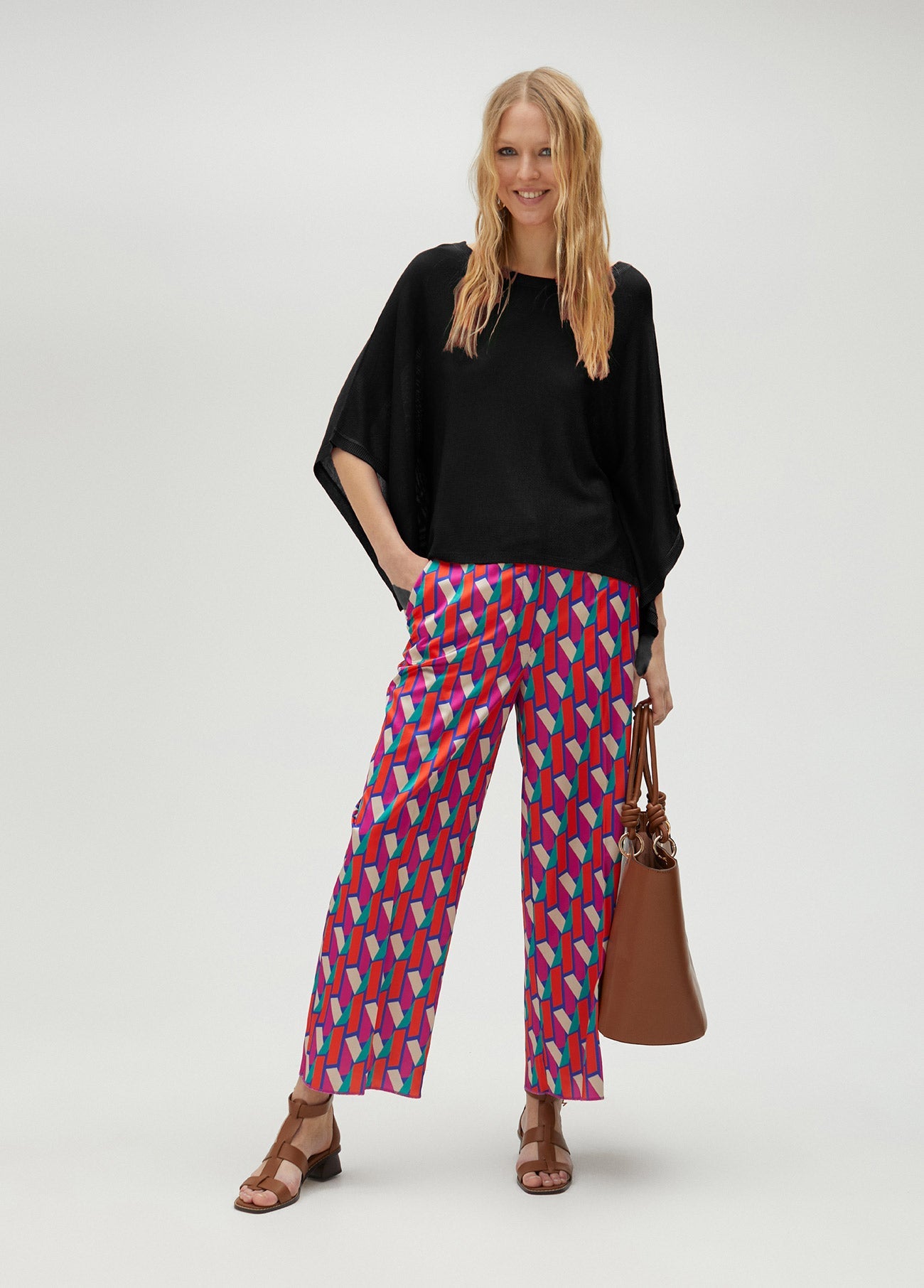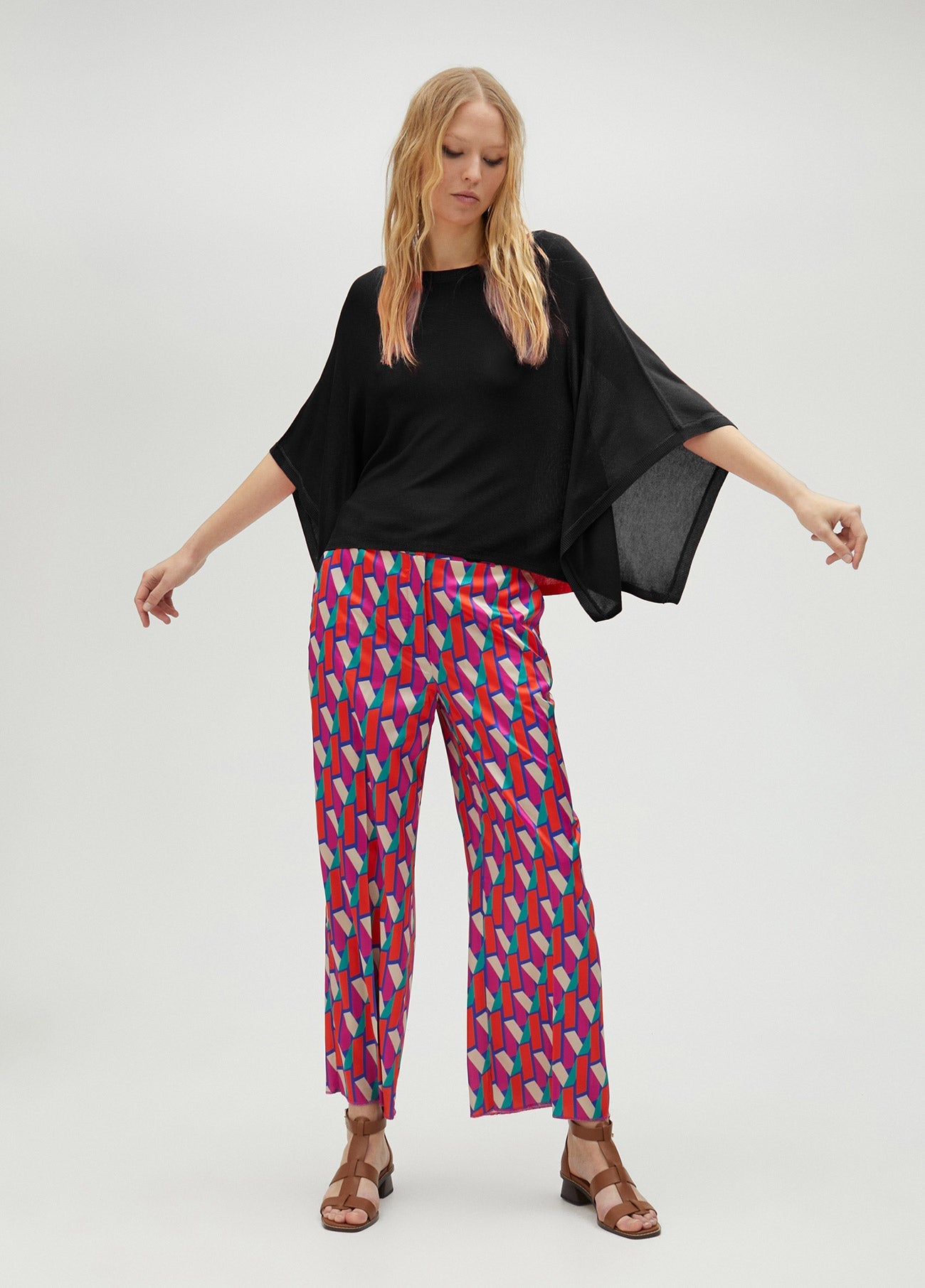 Knit sweater with cape-effect sleeves and a round neckline.