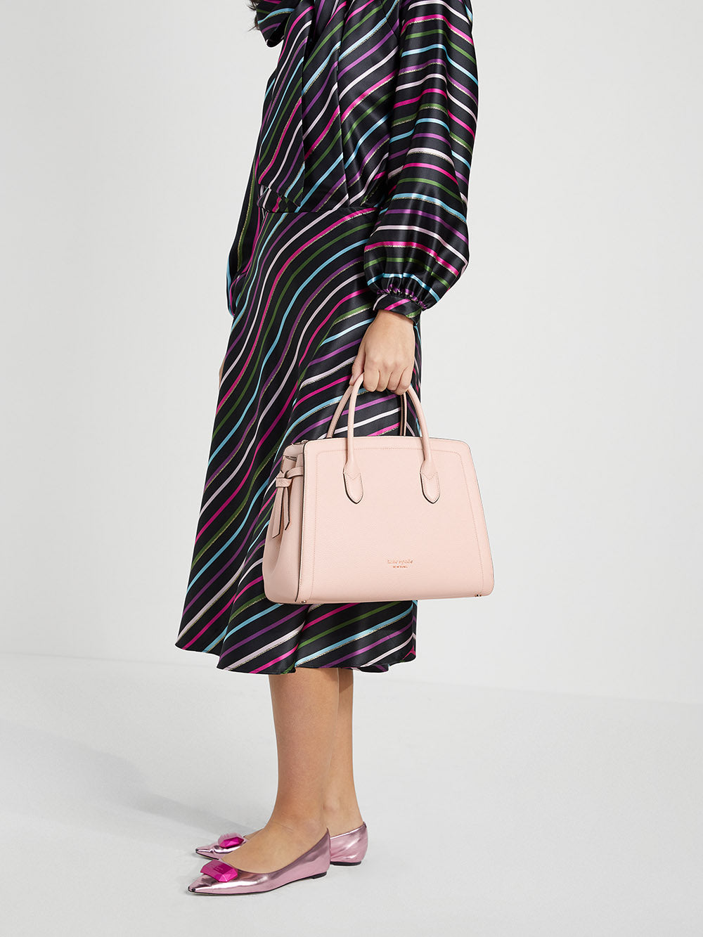 Meet Knott. You'll notice it has clever cinched knotted sides, but that's not the only reason it earned its name. Multiple pockets organize everything. There's room enough to fit your essentials—even an iPad. It's the satchel that ties it all together.