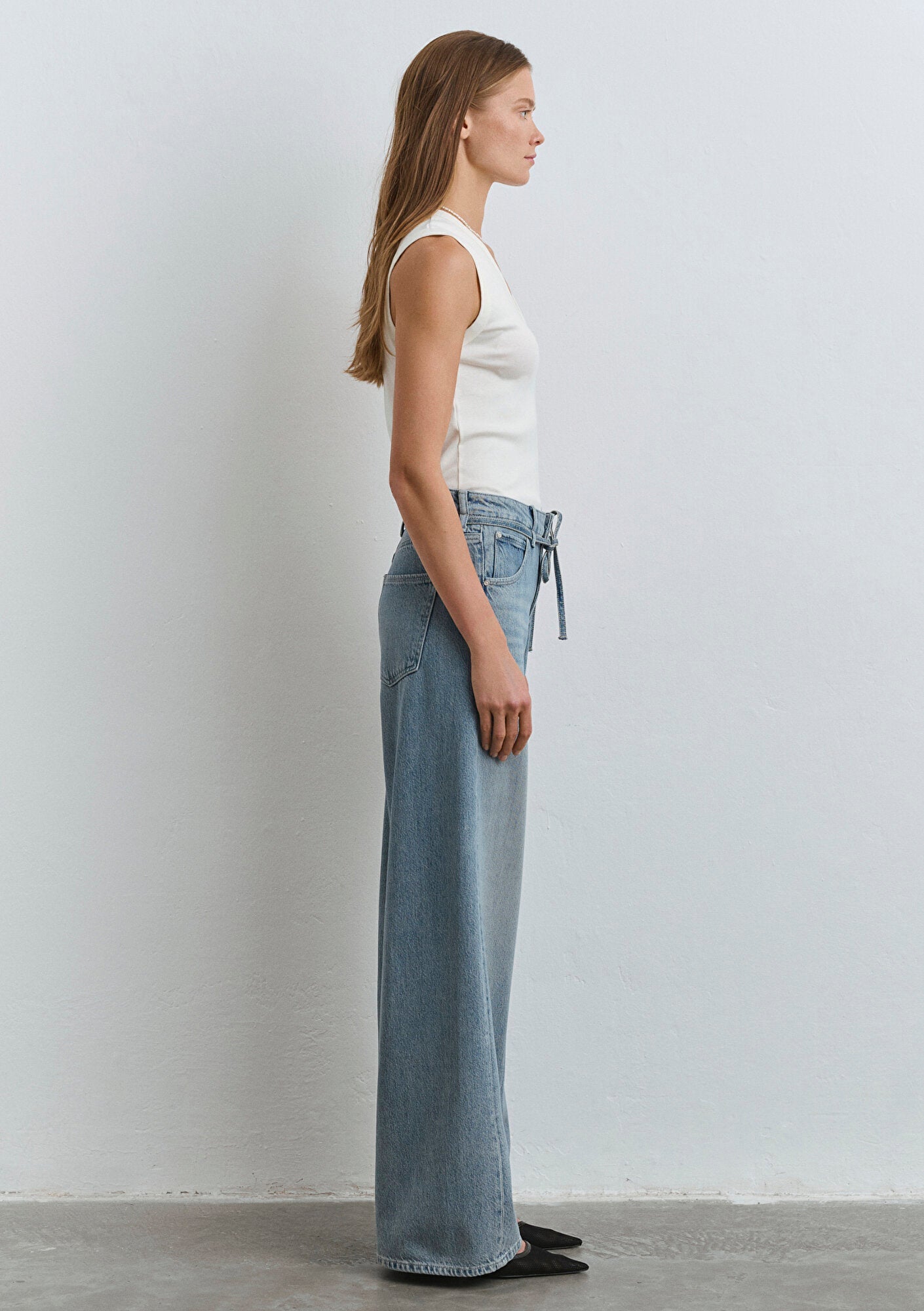 Siena Shaded Blue Iconic Jean Pants from Mavi s denim collection. High waist. Wide leg. This product is also part of Mavi s sustainable All Blue collection. It is made with TENCEL TM certified fabric.