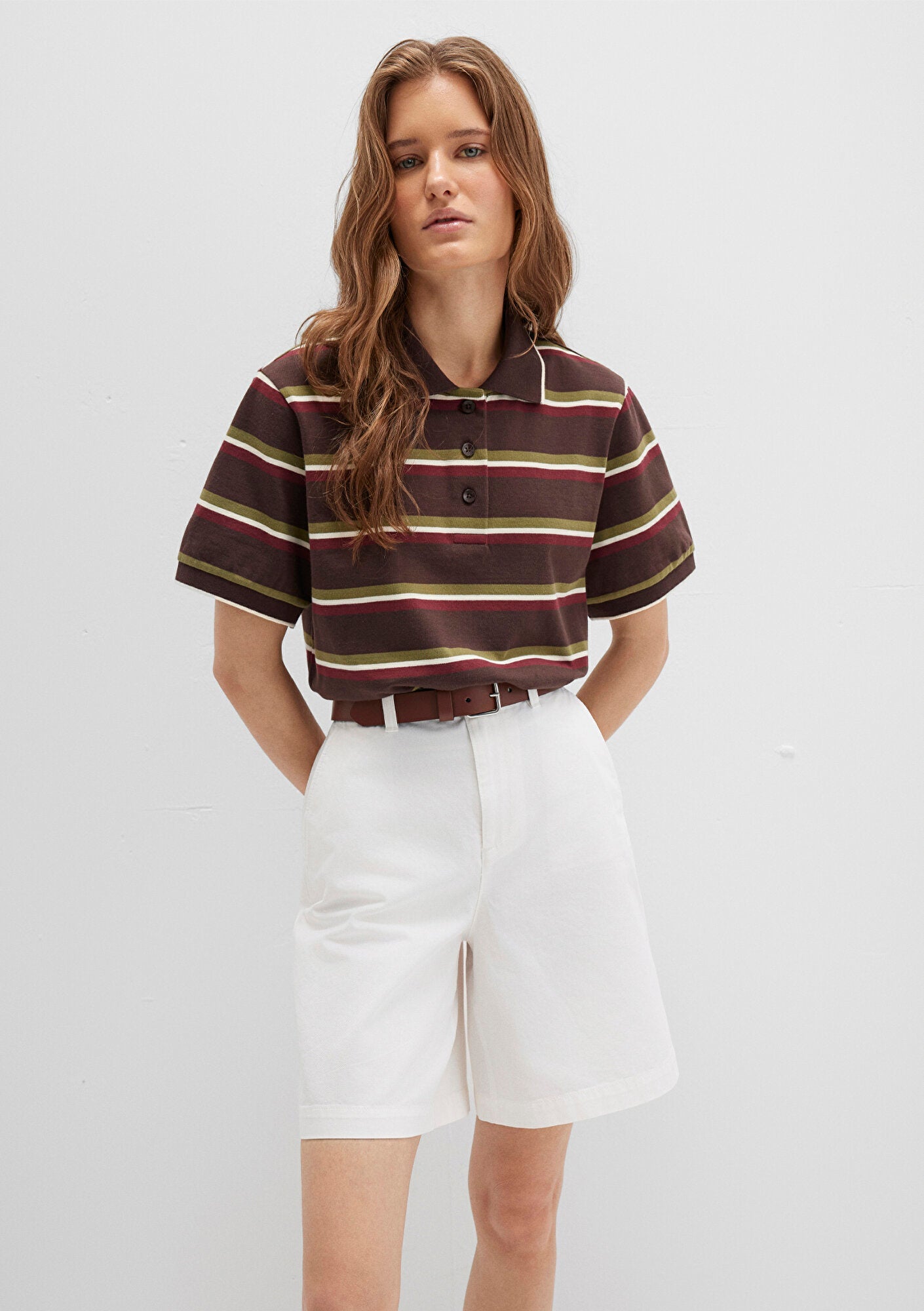 Striped Brown Polo T-Shirt from Mavi s womens collection.